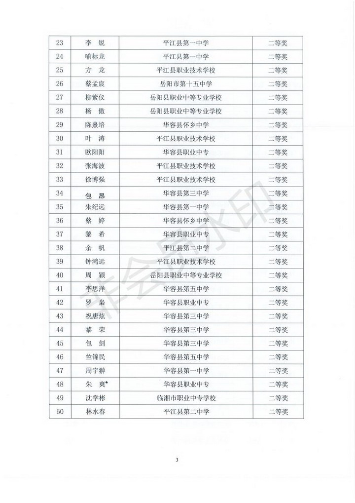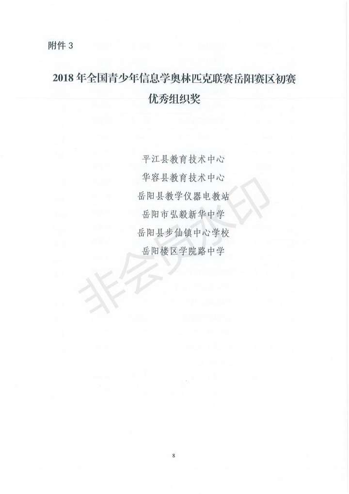关于2018年全国青少年信息学奥林匹克联赛岳阳赛区初赛获奖情况通报(岳市教科〔2018〕17号)
