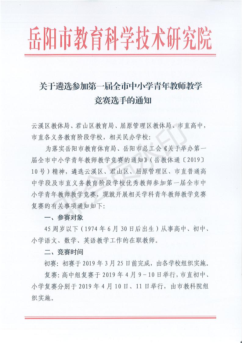 关于遴选参加第一届全市中小学青年教师教学竞赛选手的通知