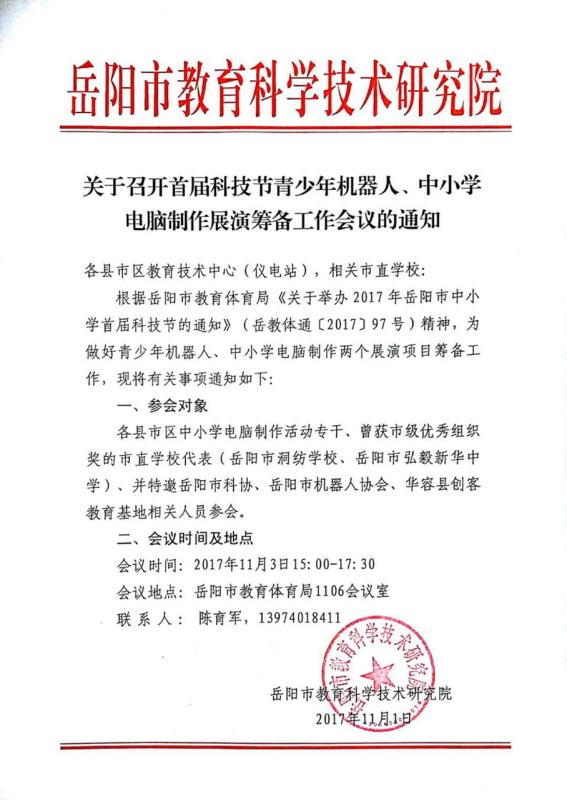 关于召开首届科技节青少年机器人、中小学电脑制作展演 筹备工作会议的通知