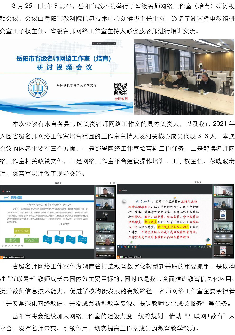 岳阳市快盈500举行省级名师网络工作室(培育)研讨视频会议