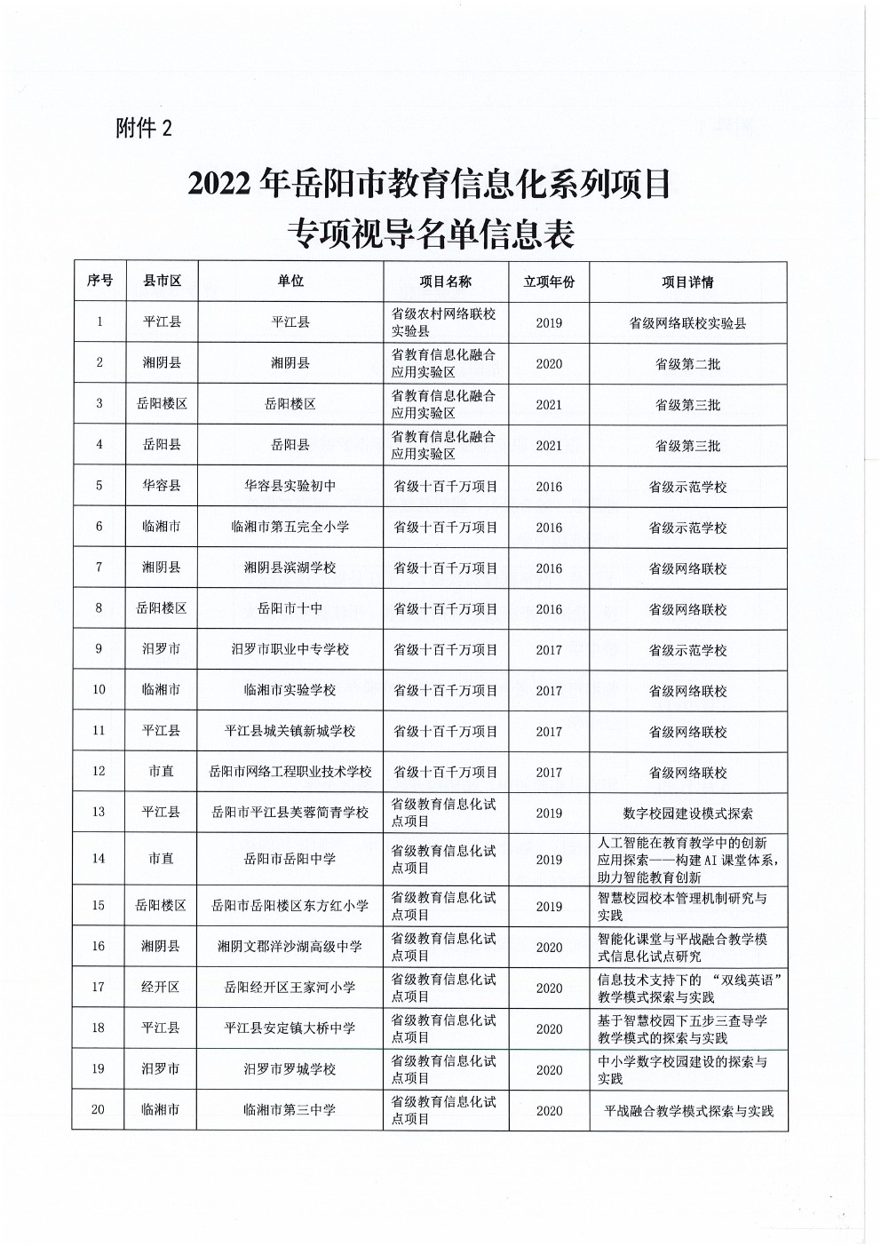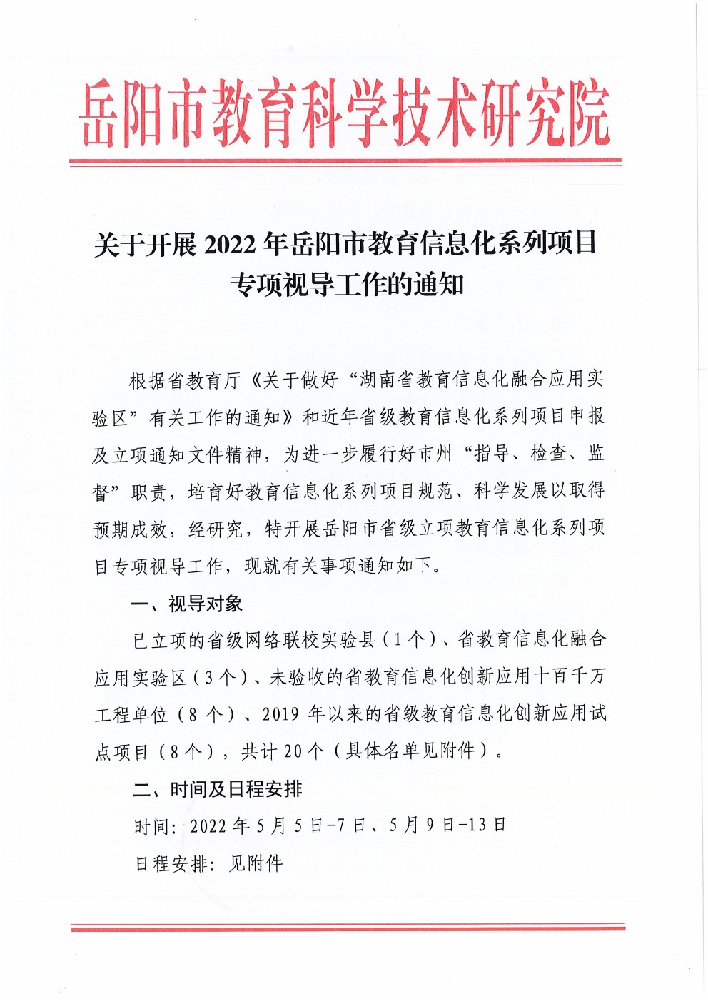 关于开展2022年岳阳市教育信息化系列项目专项视导工作的通知