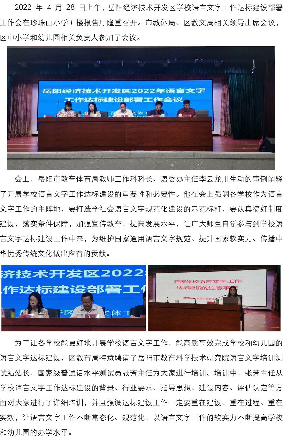 岳阳经开区 2022 年学校语言文字工作达标建设部署工作会