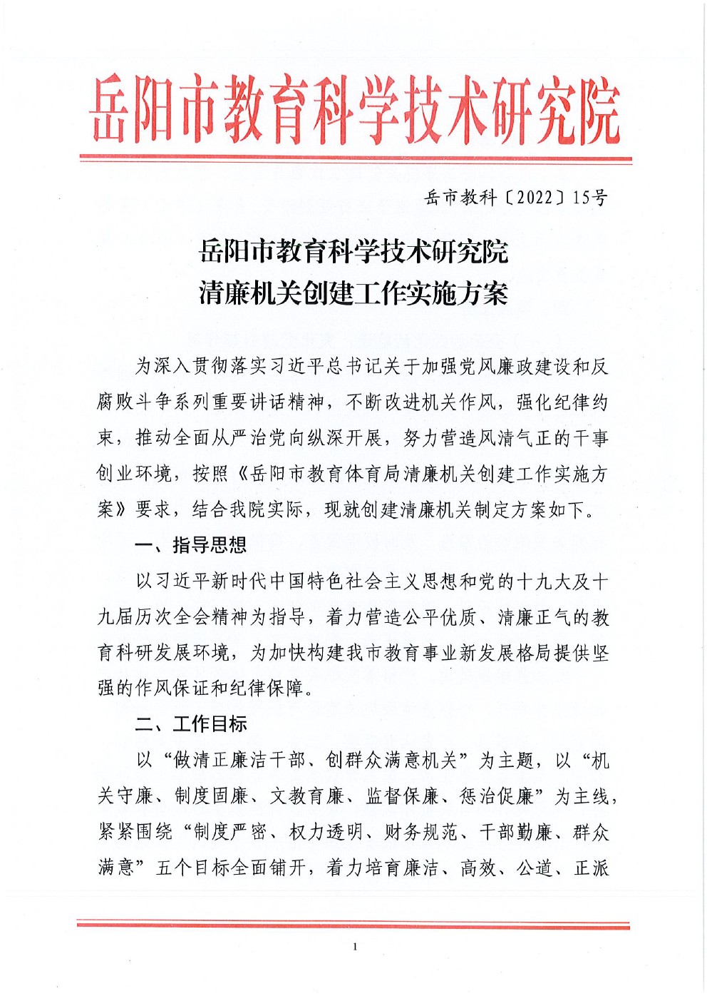 岳阳市快盈500清廉机关创建工作实施方案(岳市教科〔2022〕15号)