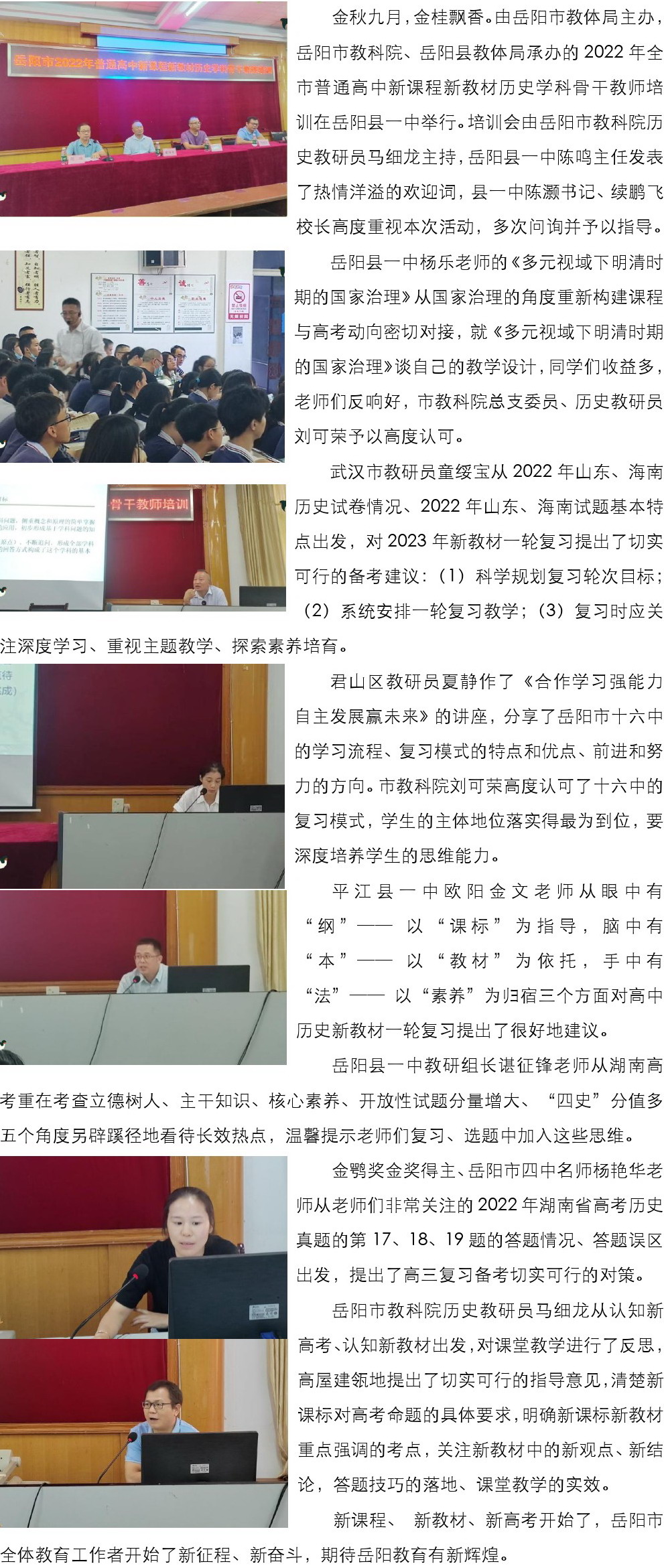 【县区动态】新课程 新教材 新征程 新期待——2022年普通高中新课程新教材历史学科骨干教师培训