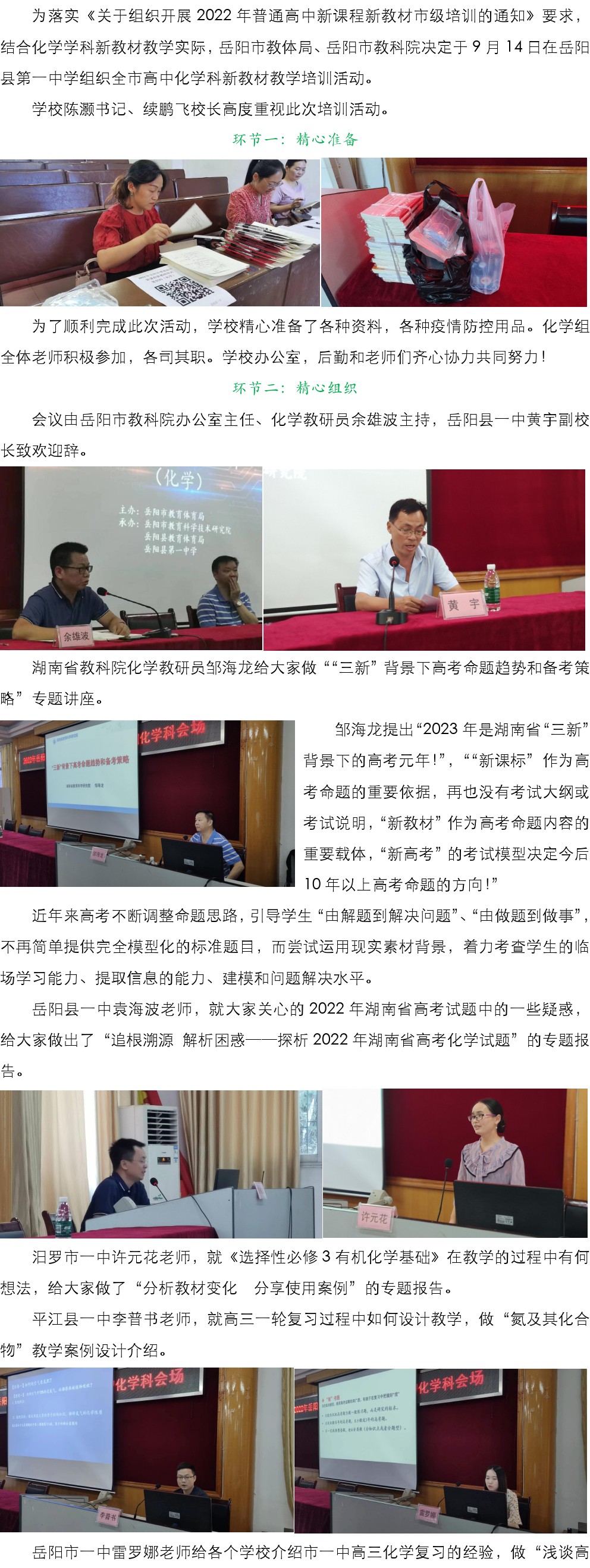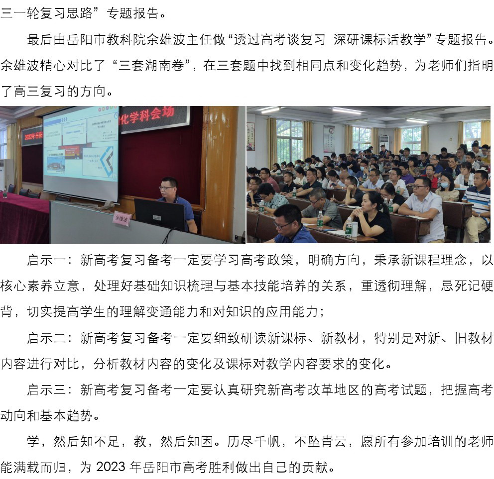 【县区动态】2022年岳阳市普通高中新课程新教材(化学)培训活动
