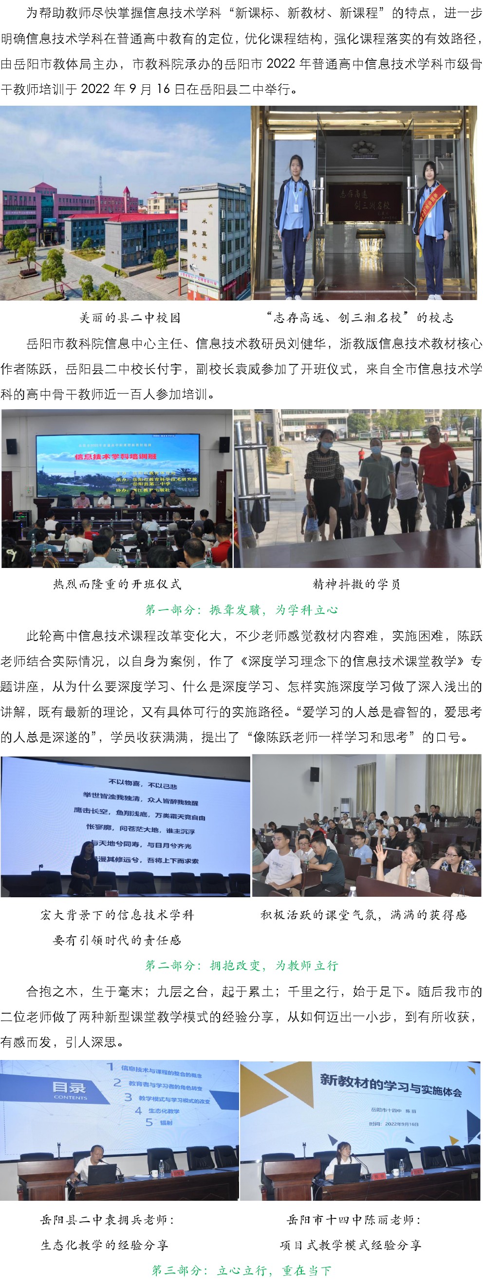 【县区动态】志存高远 立心立行——2022年岳阳市普通高中信息技术新课程新教材培训