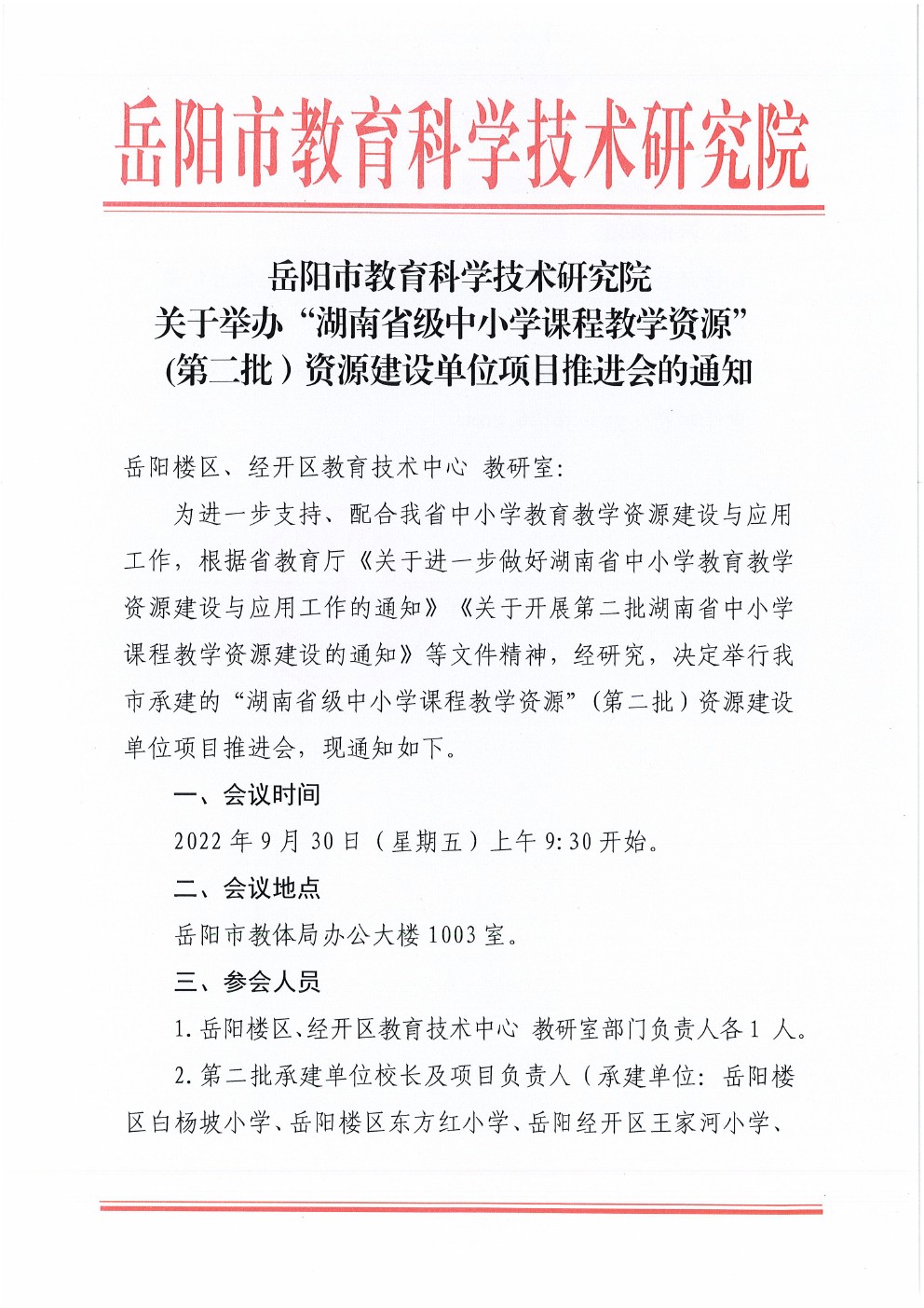 关于举办“湖南省级中小学课程教学资源”(第二批)资源建设单位项目推进会的通知
