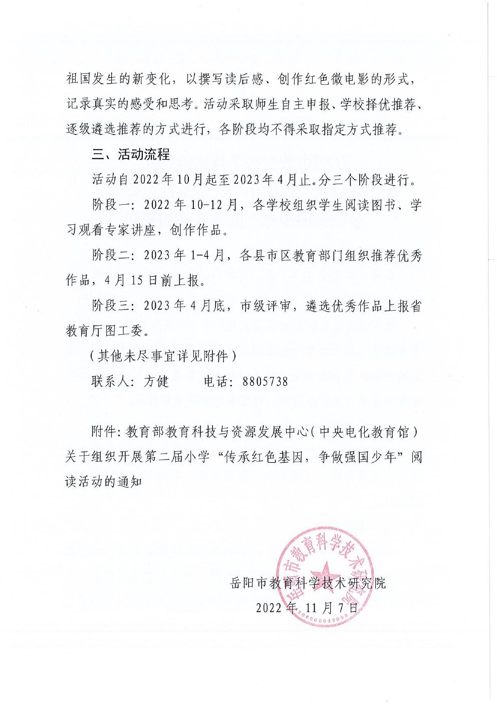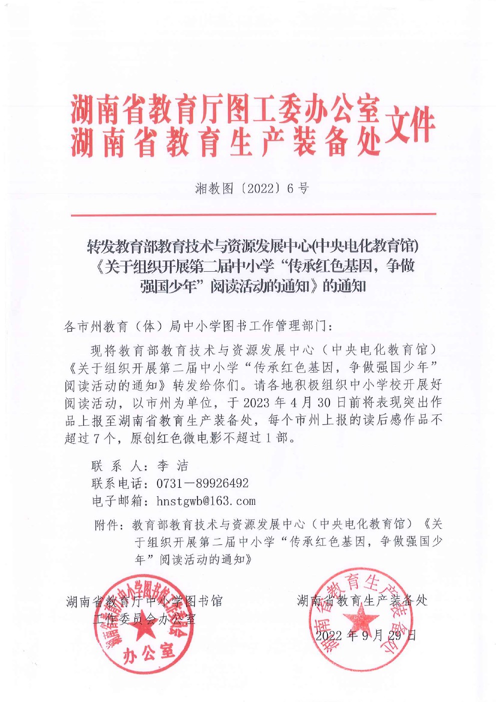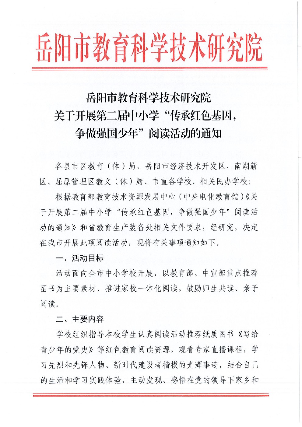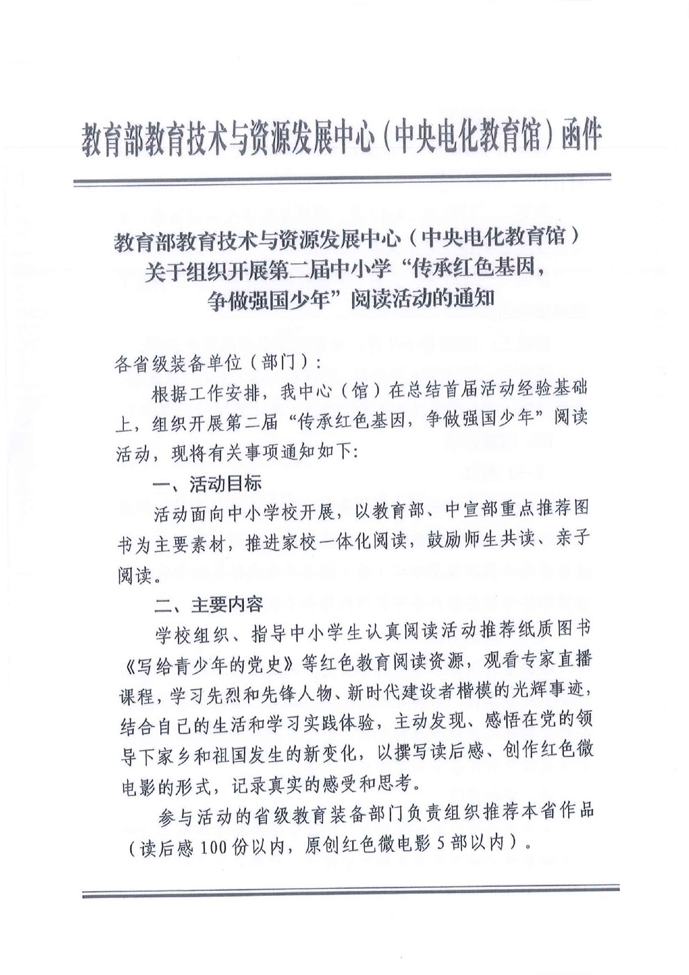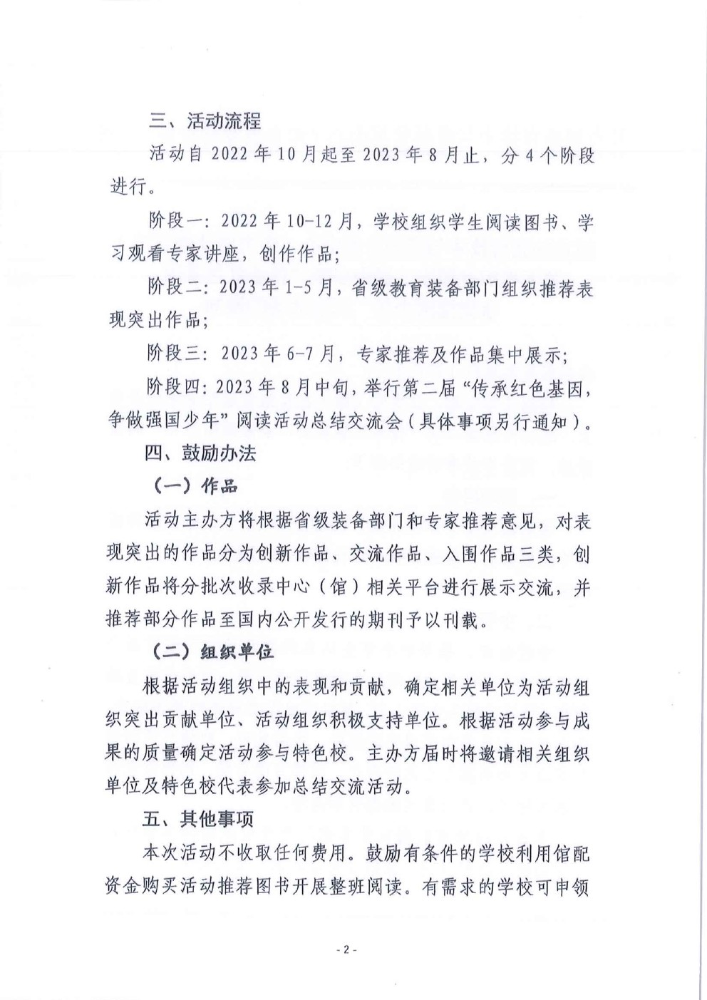 关于开展第二届中小学“传承红色基因,争做强国少年”阅读活动的通知
