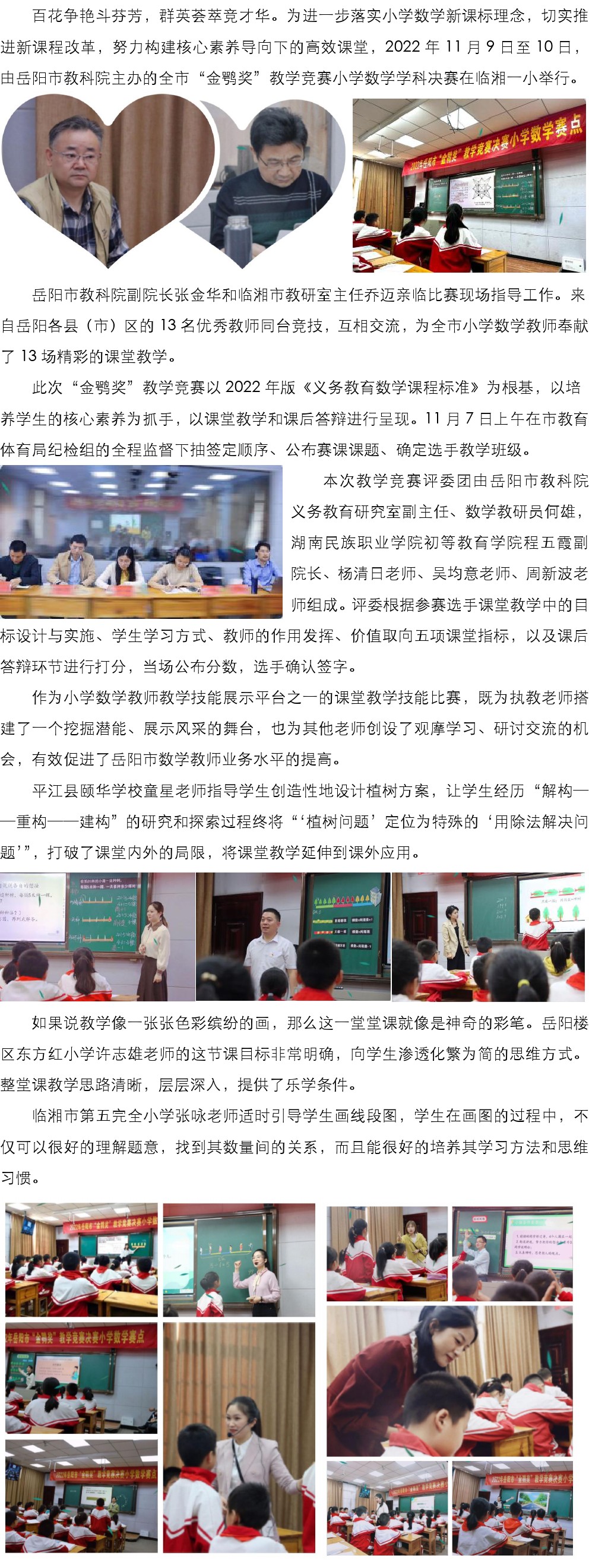【小学数学】聚焦数学课堂 提升核心素养——2022年岳阳市“金鹗奖”教学竞赛小学数学决赛