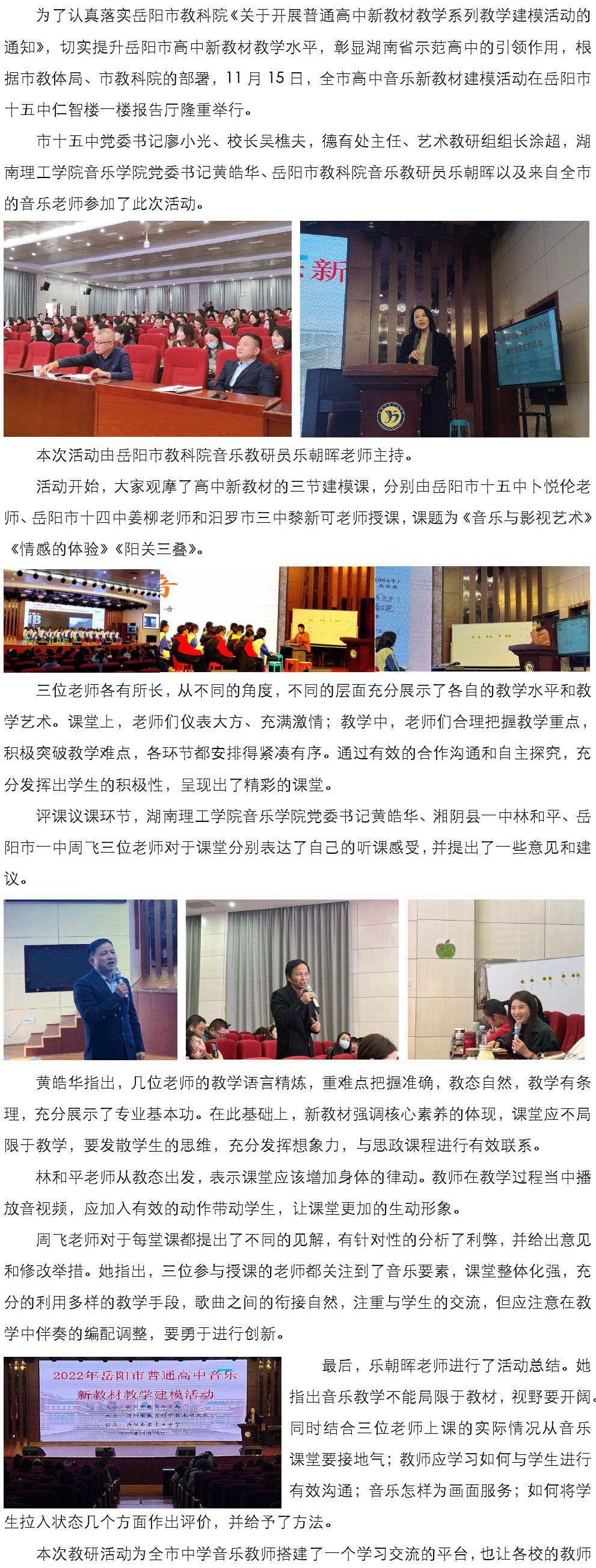 【高中音乐】关注核心素养 钻研课堂教学 ——2022年岳阳市普通高中音乐新教材教学建模活动
