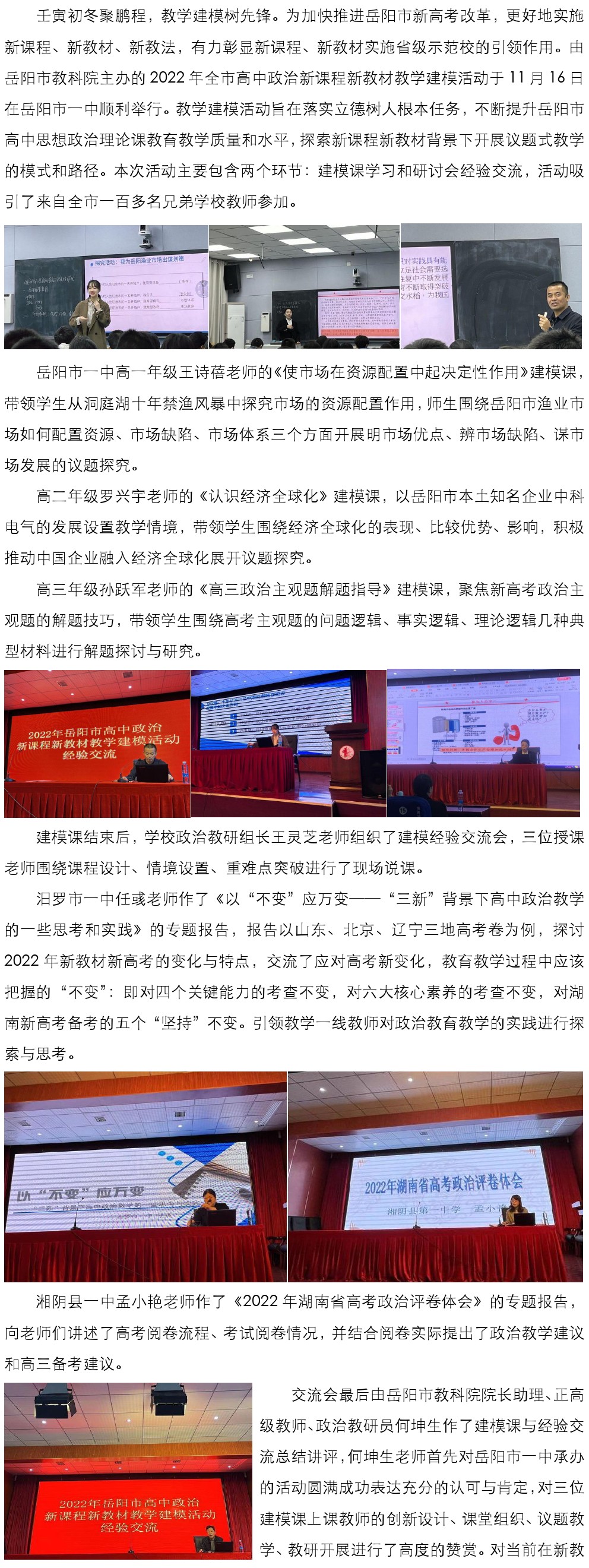 【高中政治】2022年岳阳市普通高中政治新教材教学建模活动