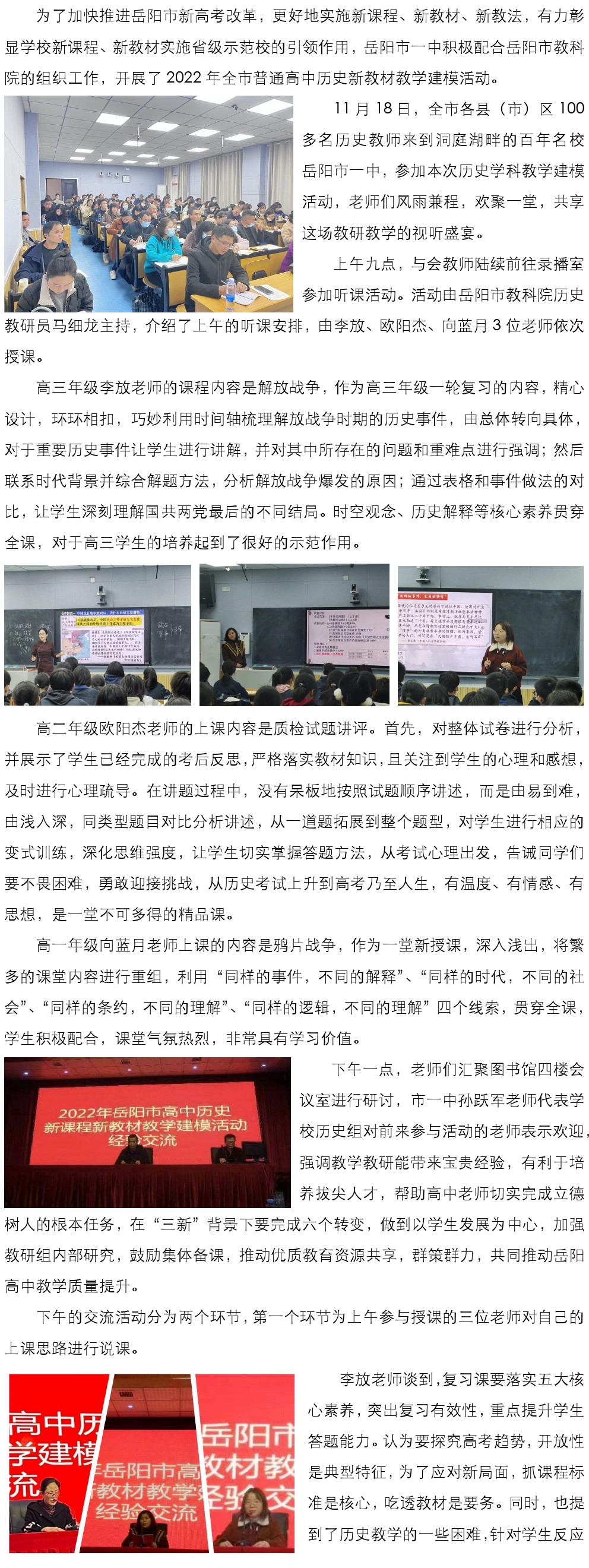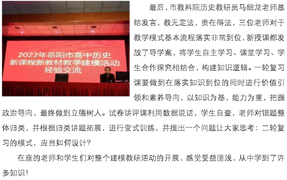 【高中历史】寓教于研,敦行致远——2022年岳阳市普通高中历史新教材教学建模活动