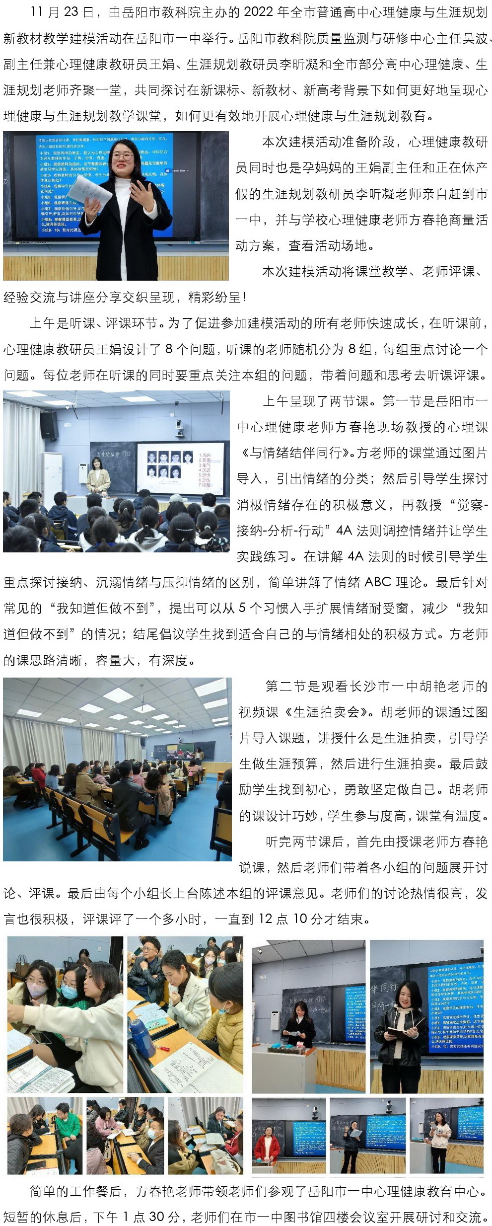 【高中心理健康与生涯规划】教研携手,学思并肩——2022年岳阳市普通高中心理健康与生涯规划新教材教学建模活动