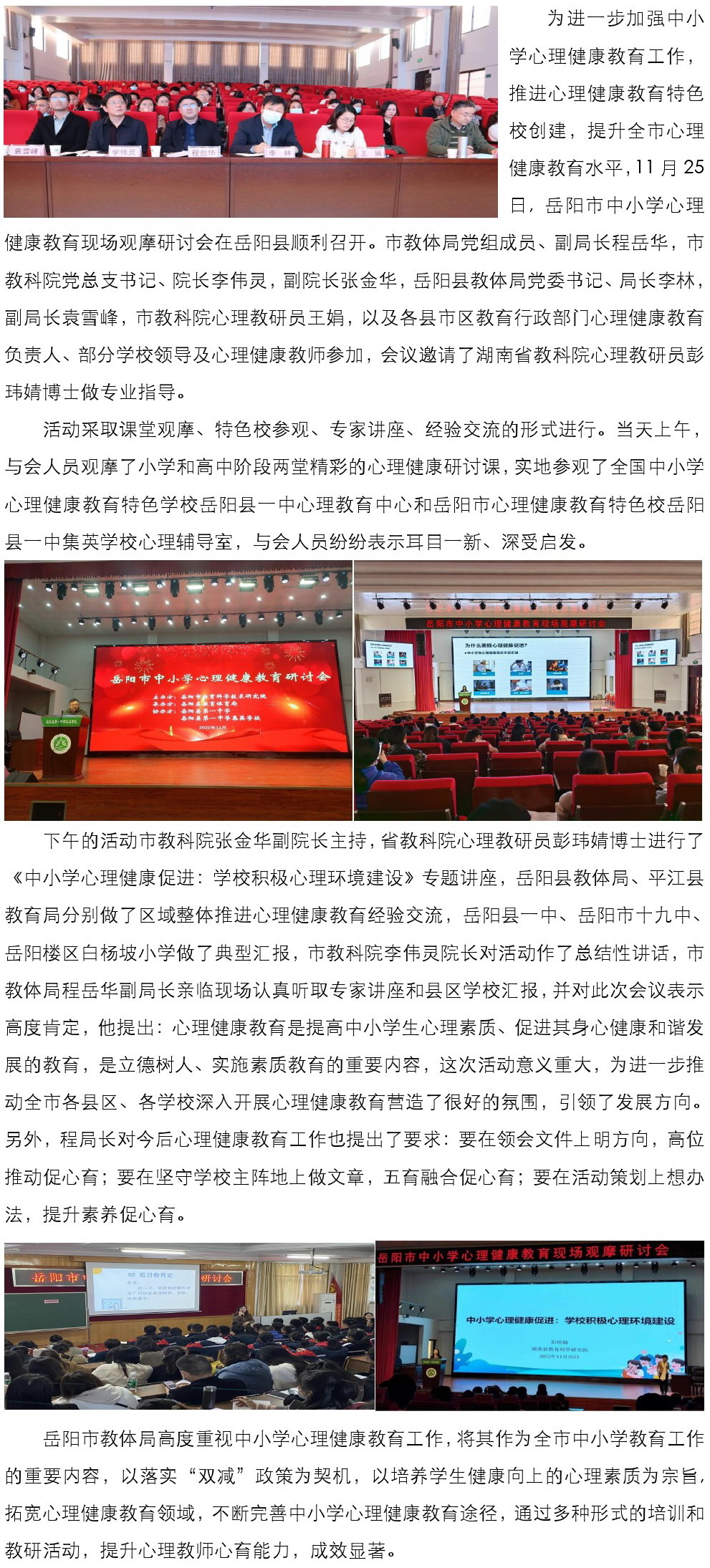 【心理健康】心育向未来,教研促提升——岳阳市中小学心理健康教育现场观摩研讨会活动成功召开