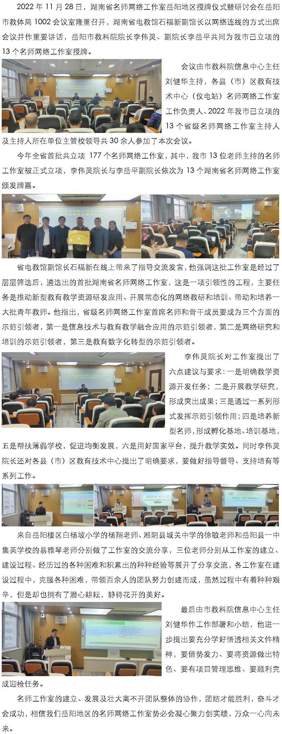 【名师授牌】2022年湖南省名师网络工作室岳阳地区授牌仪式暨研讨会成功召开