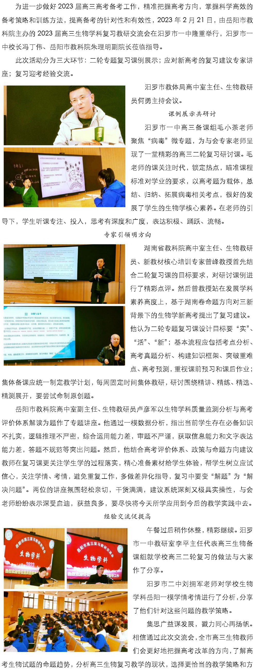 【高中生物】凝心聚力共研讨,蓄势扬帆再启航——岳阳市2023届高三生物学科复习教研交流会