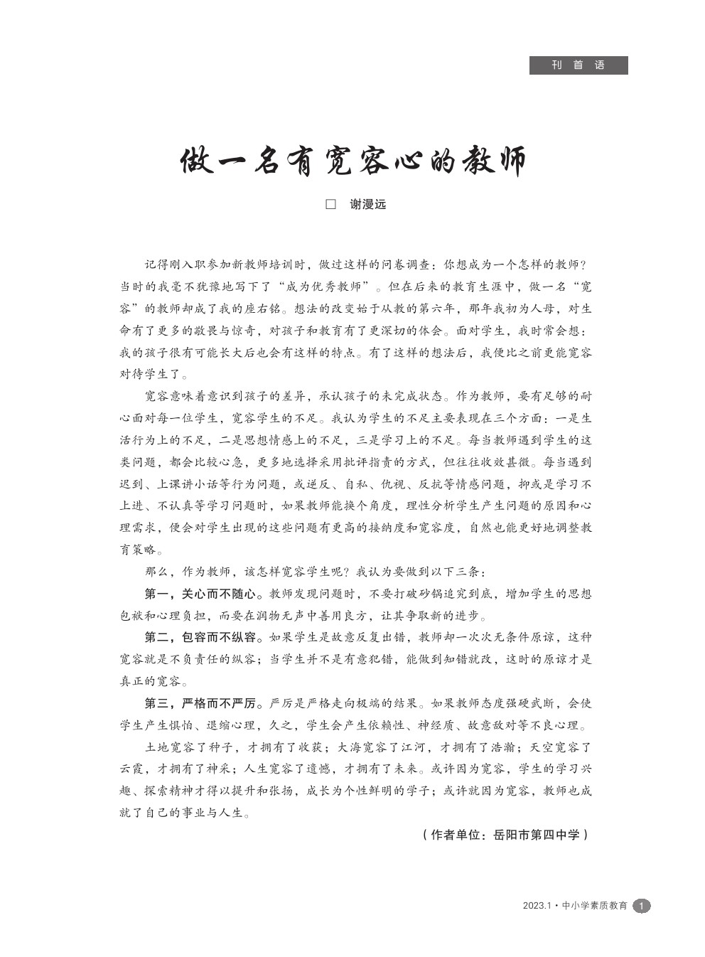 【2023年第1期】-做一名有宽容心的教师