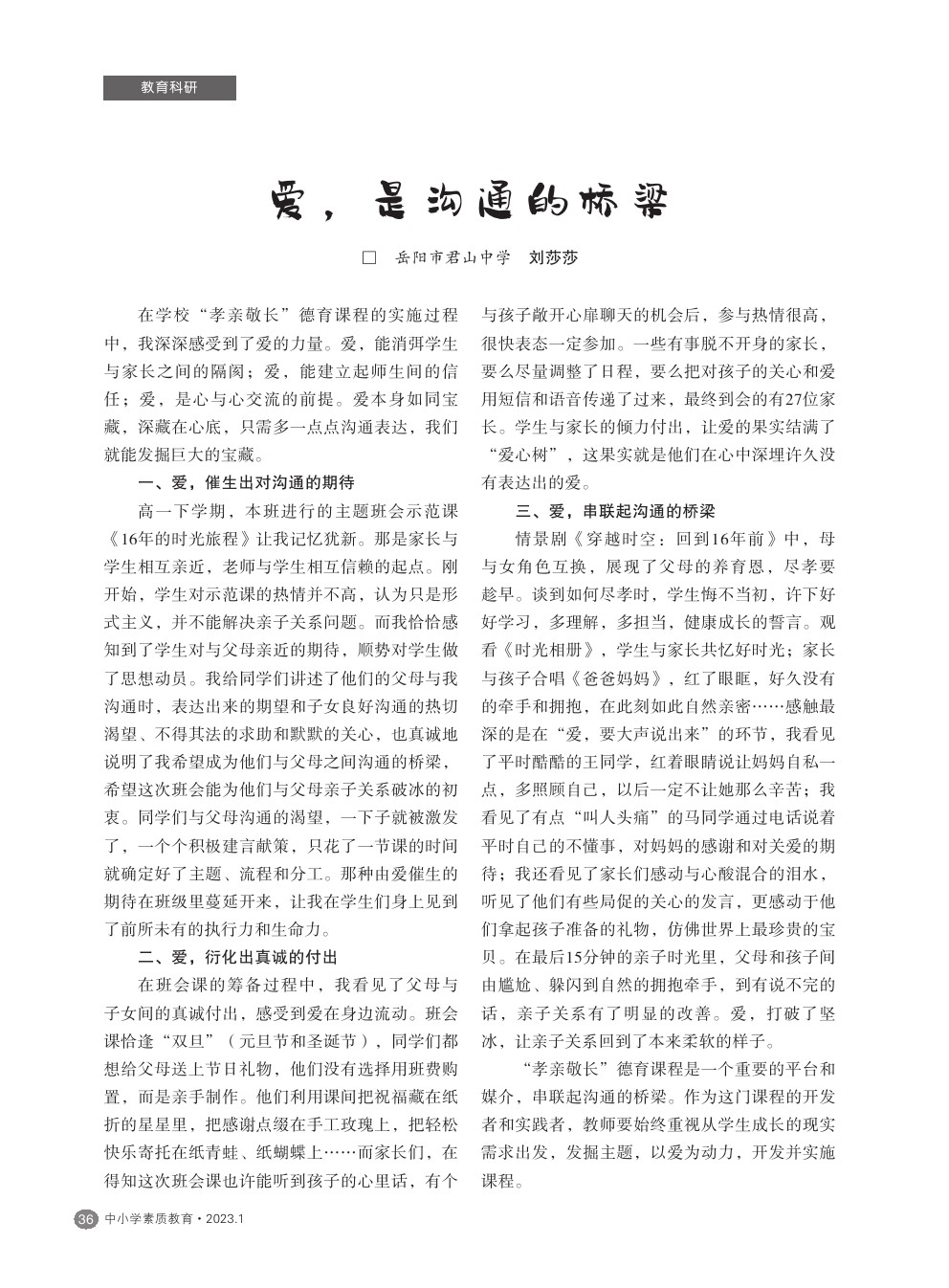【2023年第1期】爱,是沟通的桥梁