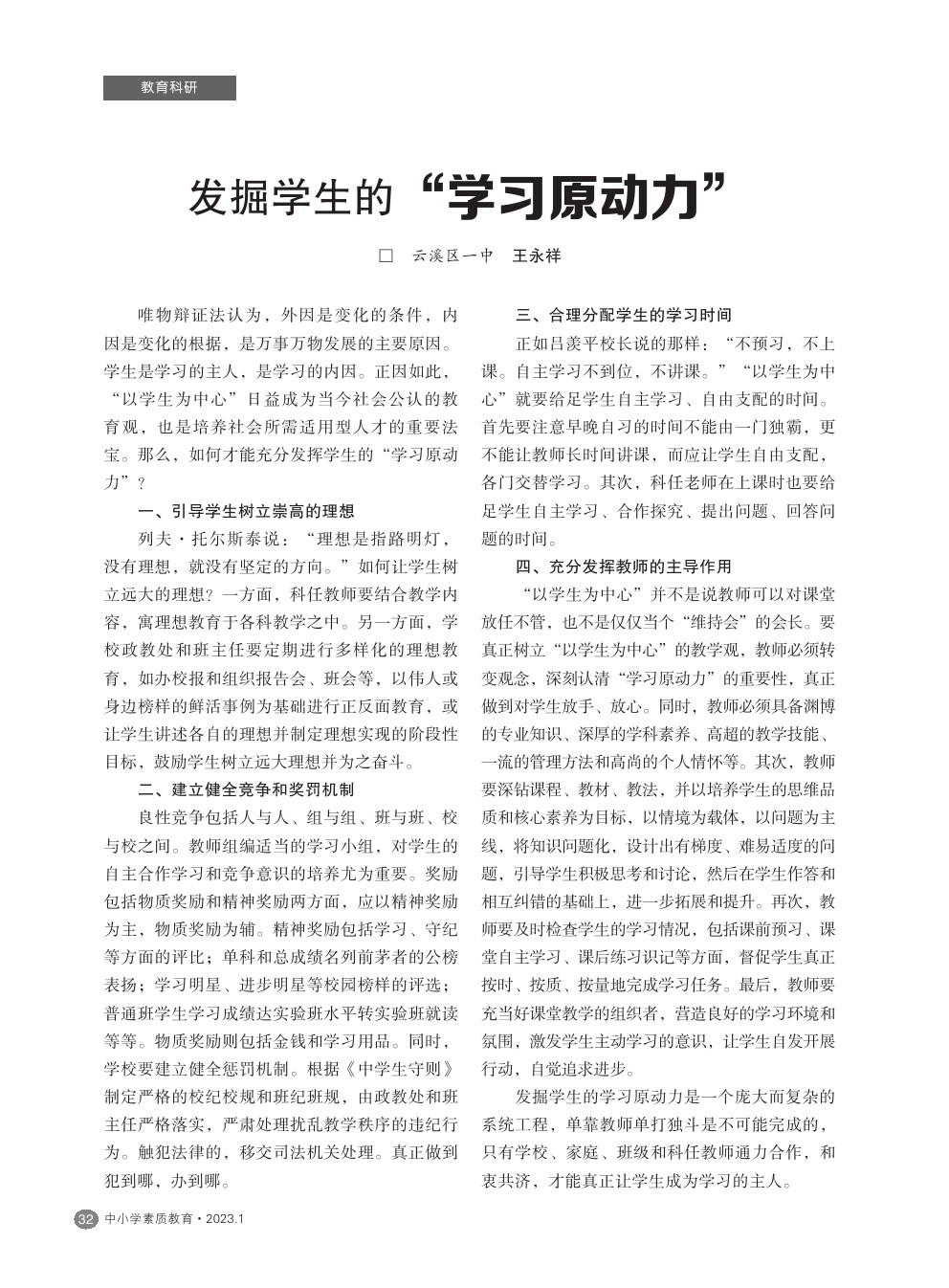 【2023年第1期】发掘学生的”学习原动力”