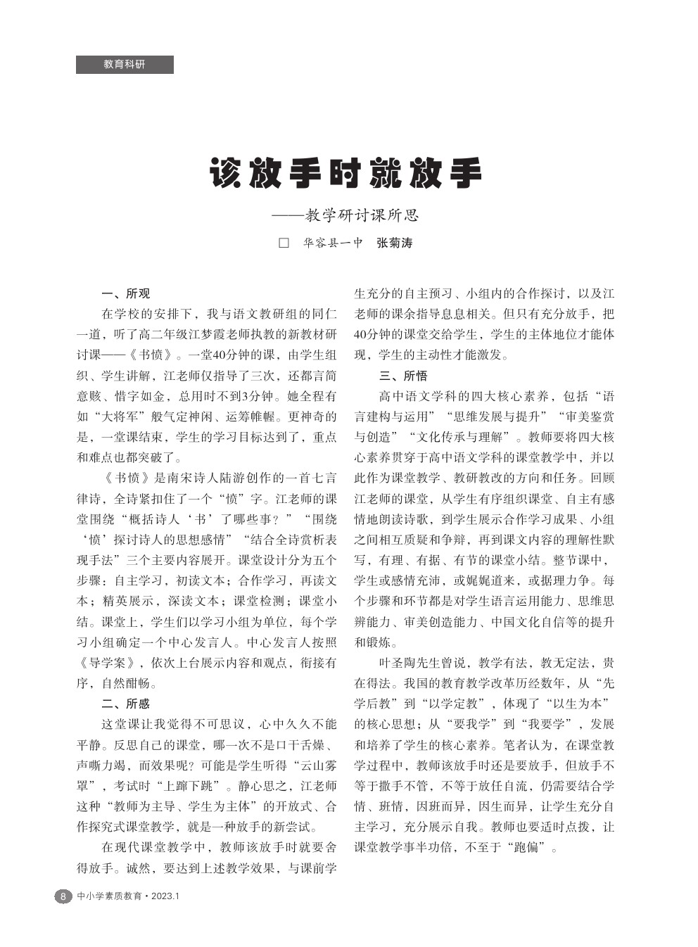 【2023年第1期】该放手时就放手——教学研讨课所思