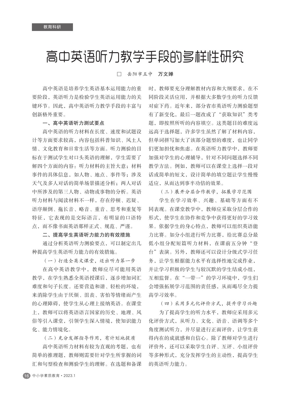 【2023年第1期】高中英语听力教学手段的多样性研究