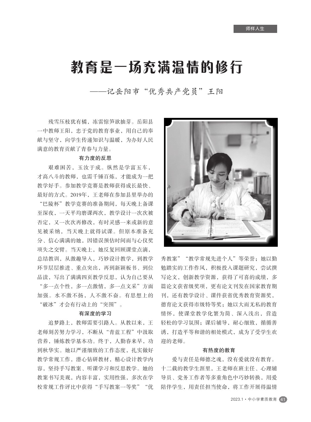 【2023年第1期】教育是一场充满温情的修行——记岳阳市“优秀共产党员”王阳