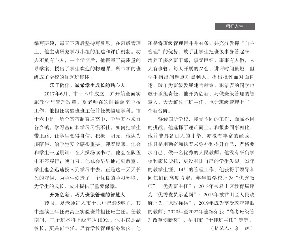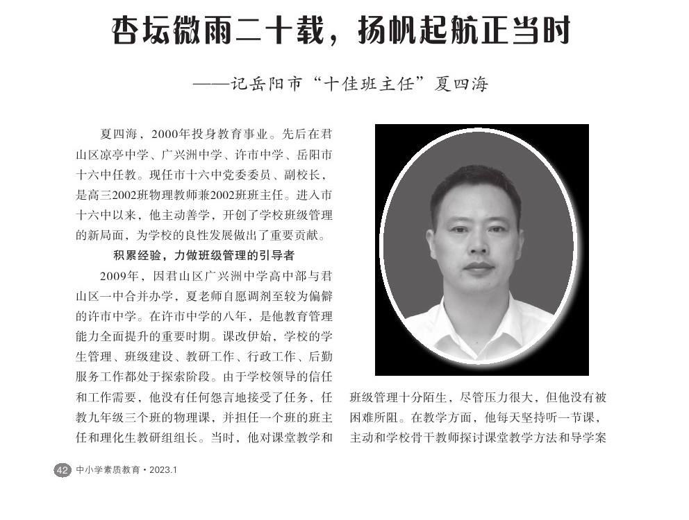 【2023年第1期】杏坛微雨二十载,扬帆起航正当时——记岳阳市“十佳班主任”夏四海
