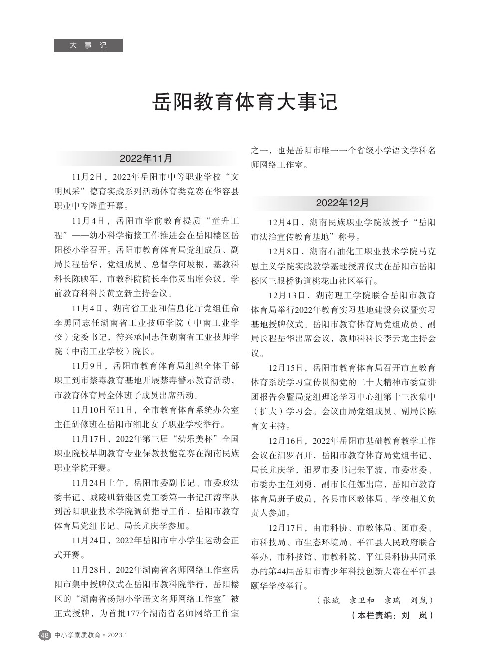 【2023年第1期】岳阳教育体育大事记