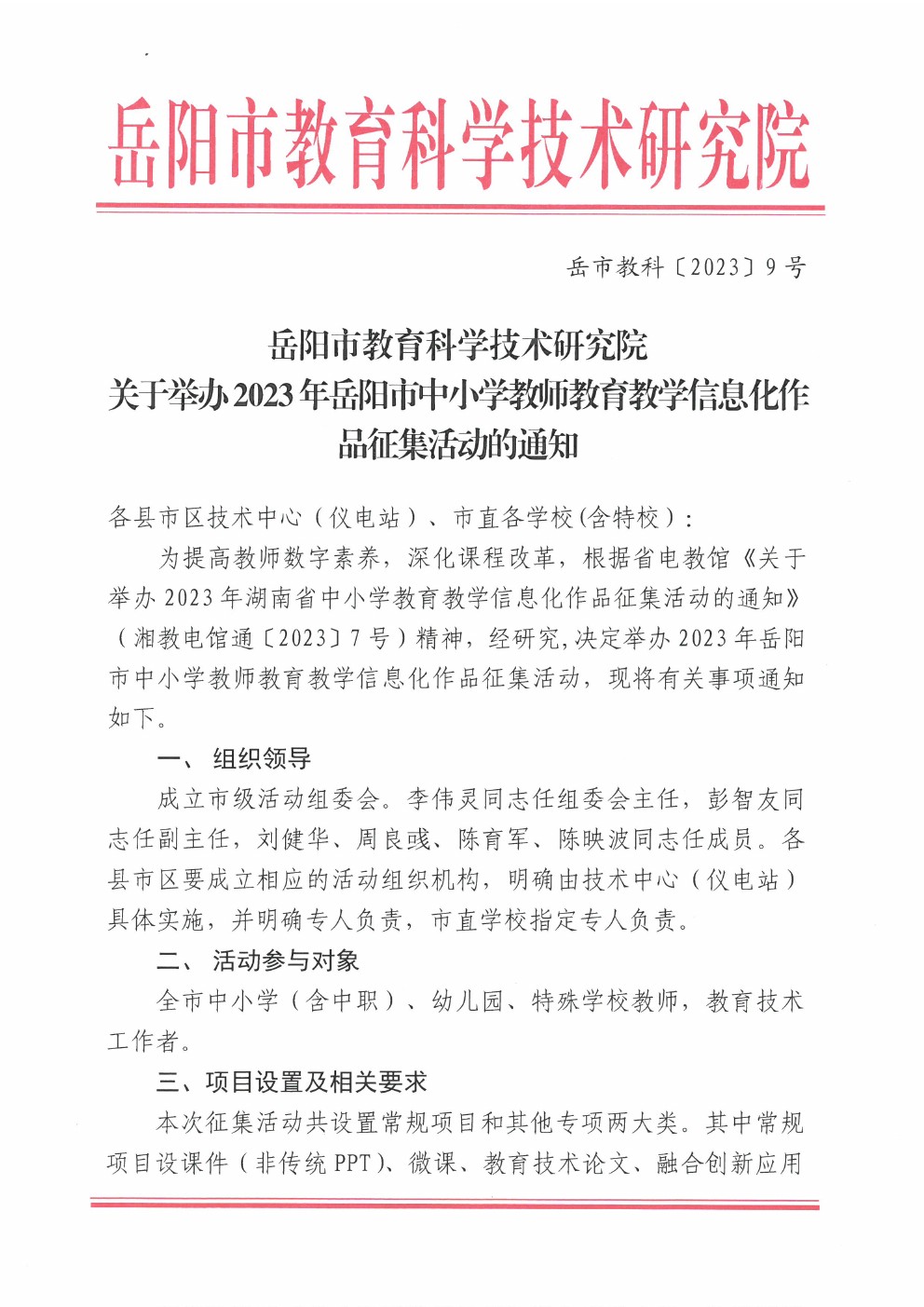 关于举办2023年岳阳市中小学教师教育教学信息化作品征集活动的通知(岳市教科〔2023〕9号).pdf