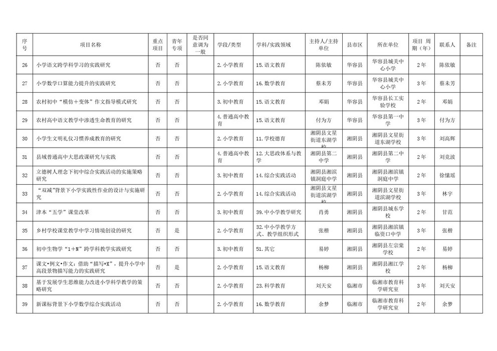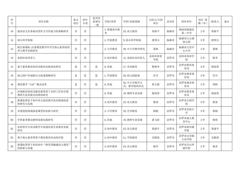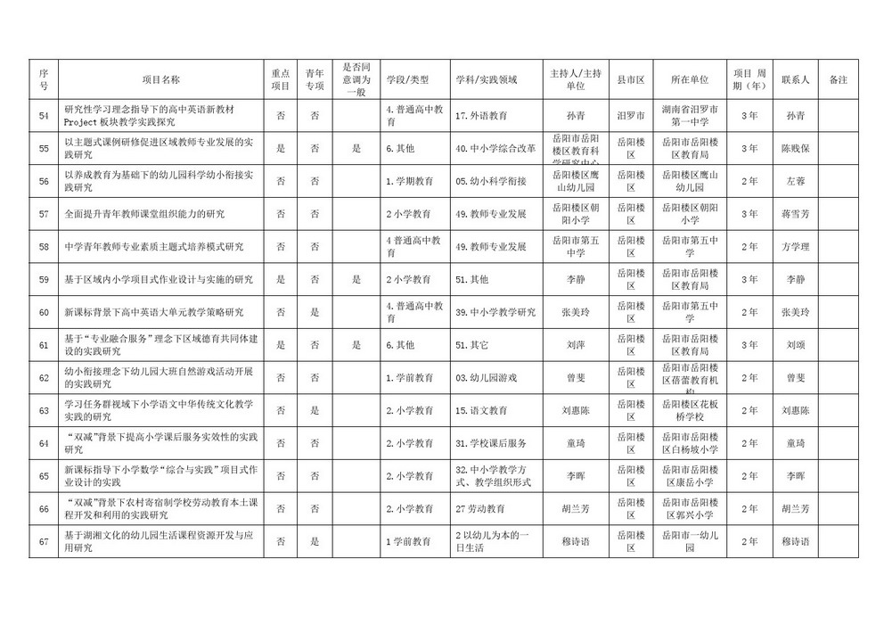 首届湖南省基础教育教学改革项目拟推荐名单公示