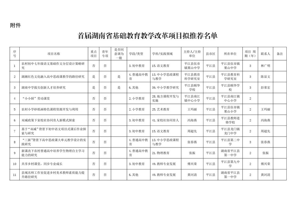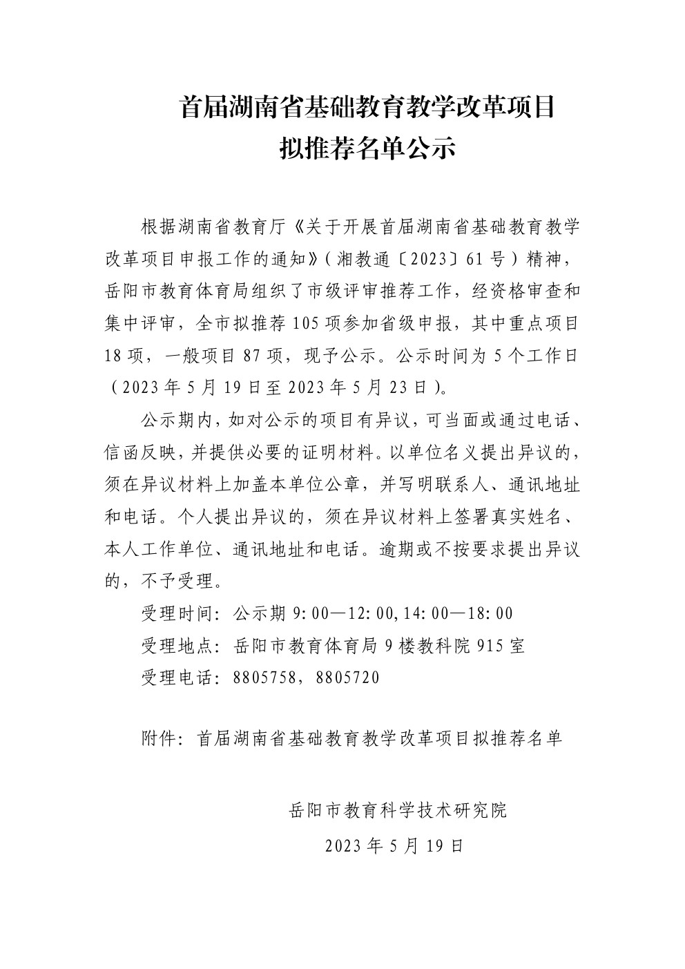 首届湖南省基础教育教学改革项目拟推荐名单公示.pdf