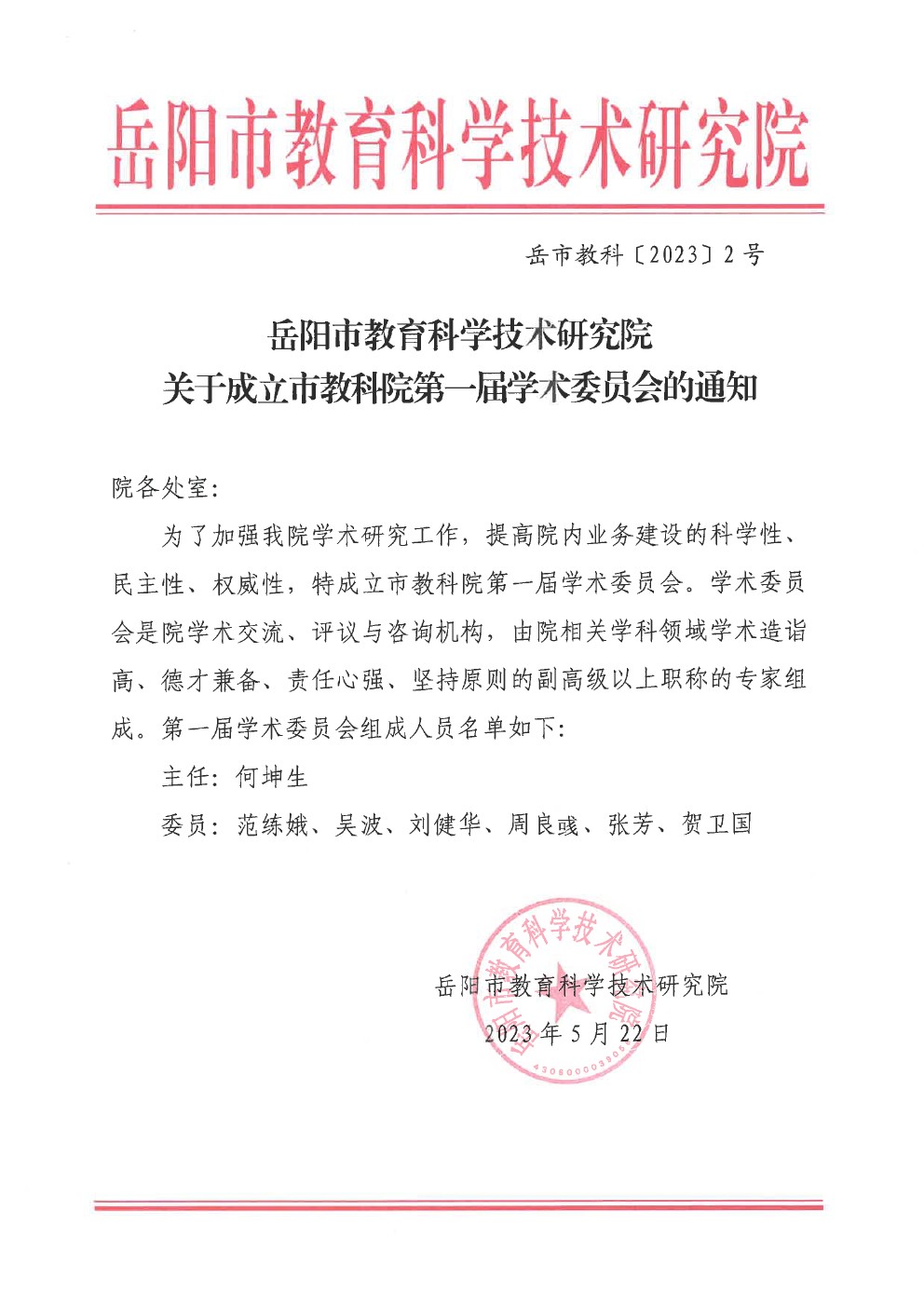关于成立市快盈500第一届学术委员会的通知(岳市教科〔2023〕2号)