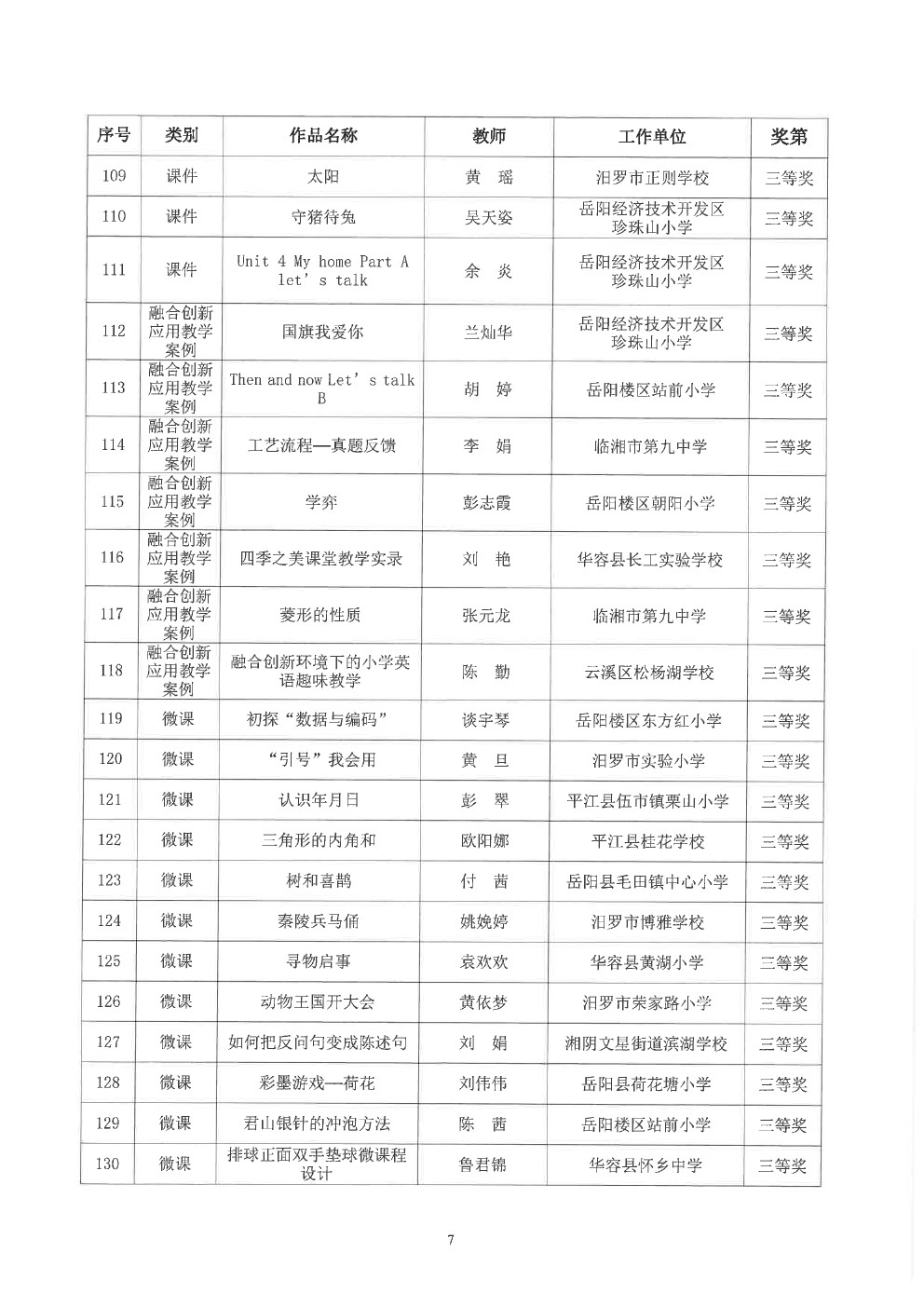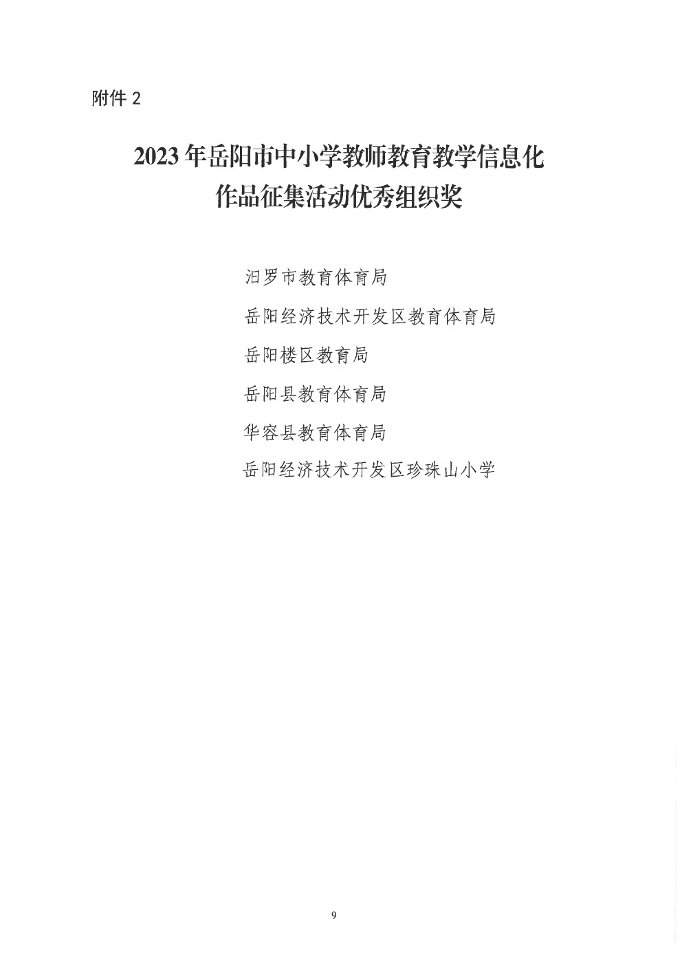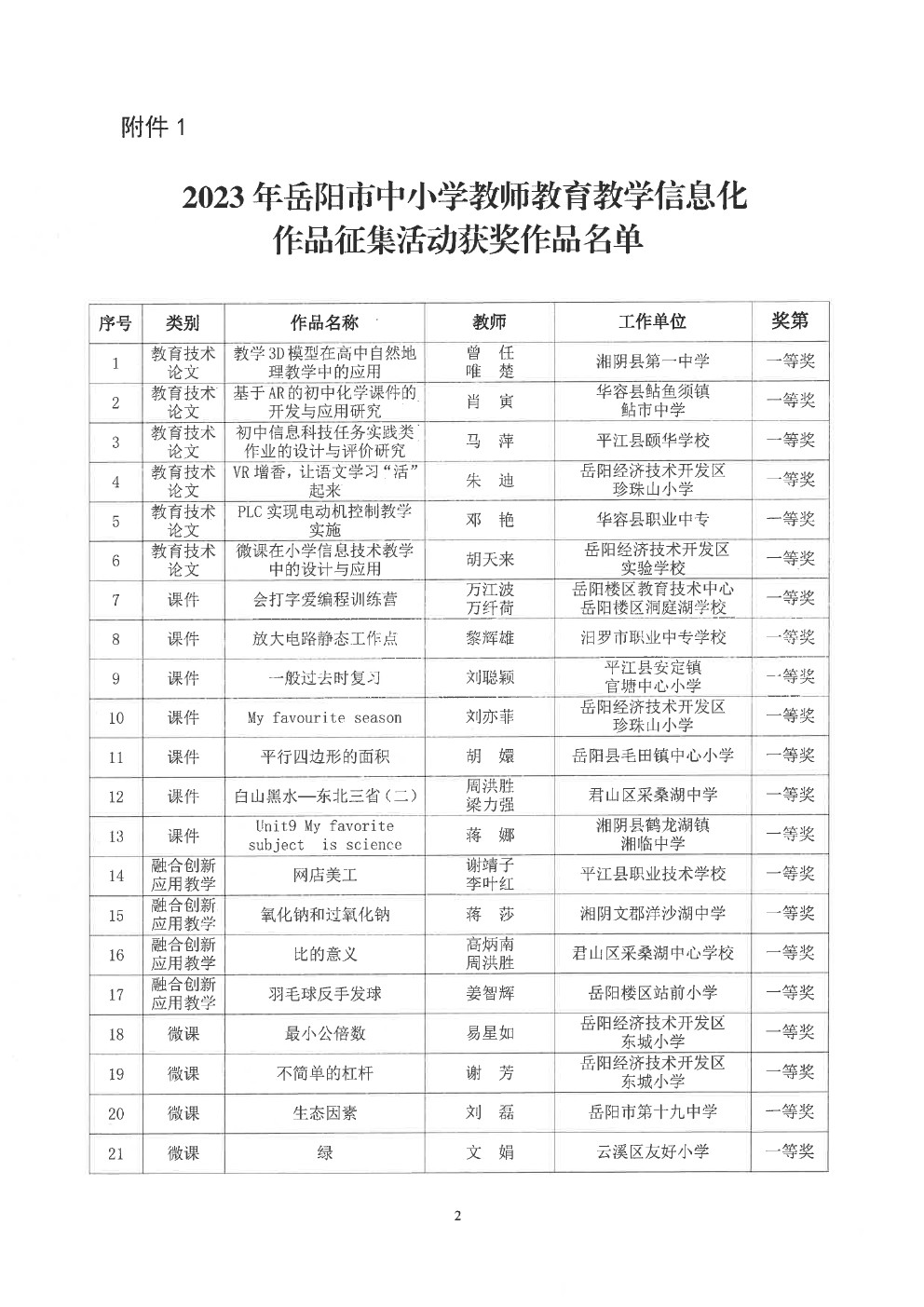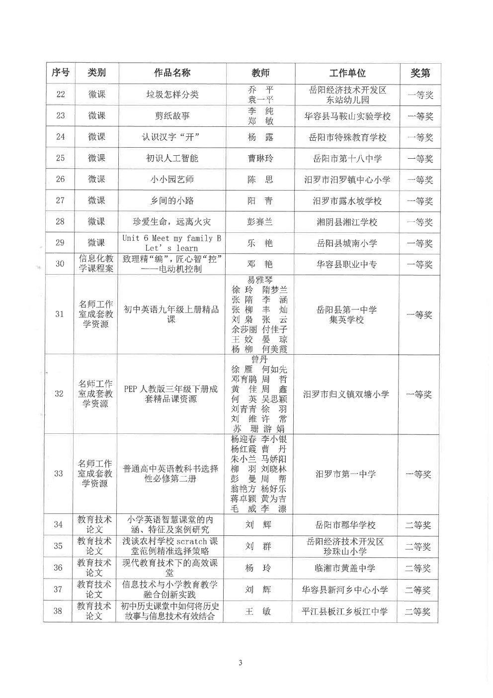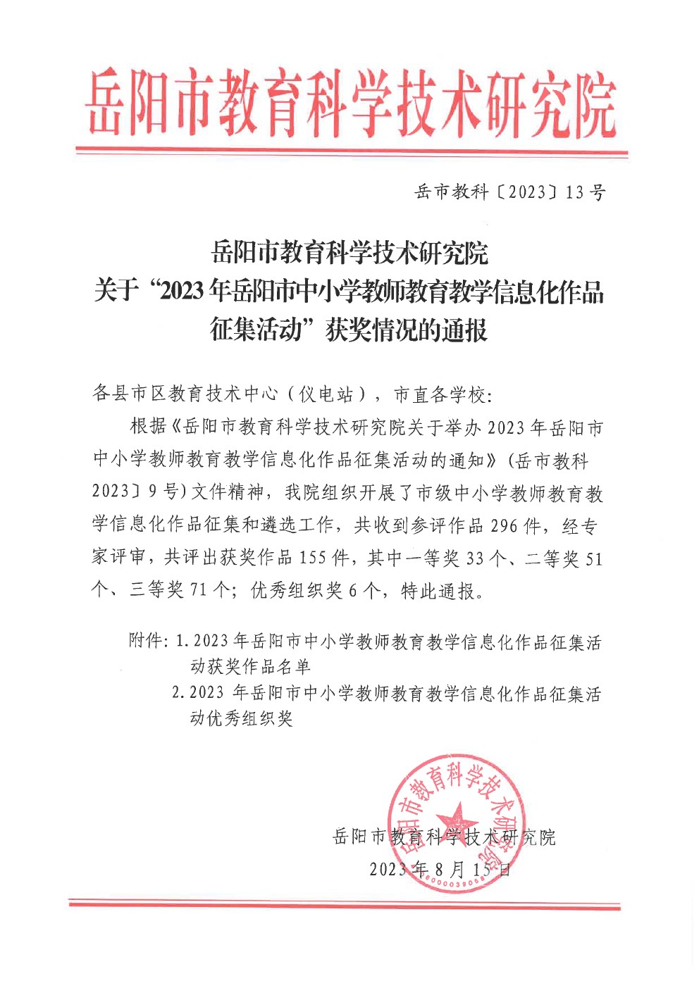 关于“2023年岳阳市中小学教师教育教学信息化作品征集活动”获奖情况的通报(岳市教科〔2023〕13号)