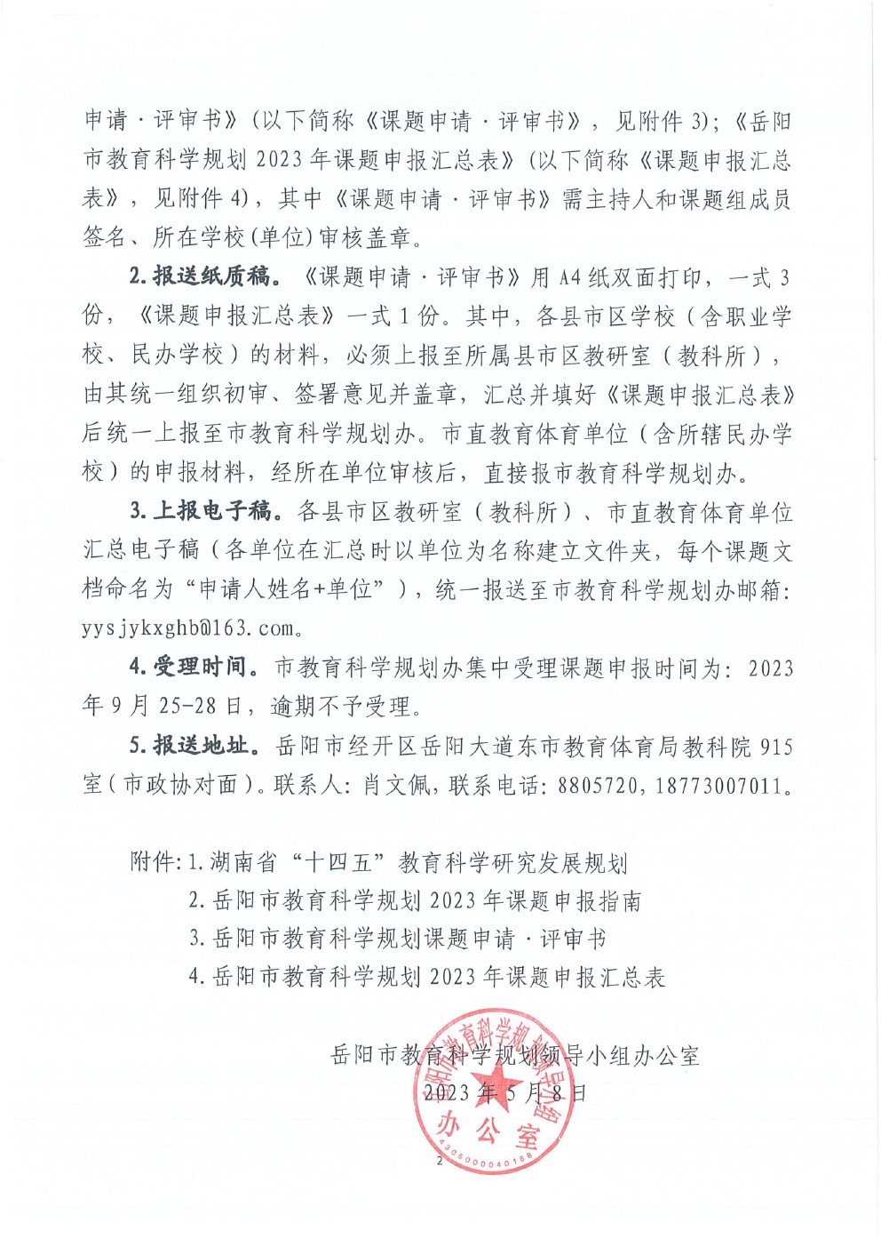 关于组织申报岳阳市教育科学“十四五”规划2023年课题的通知(岳市教科规办〔2023〕6号)及附件~.zip