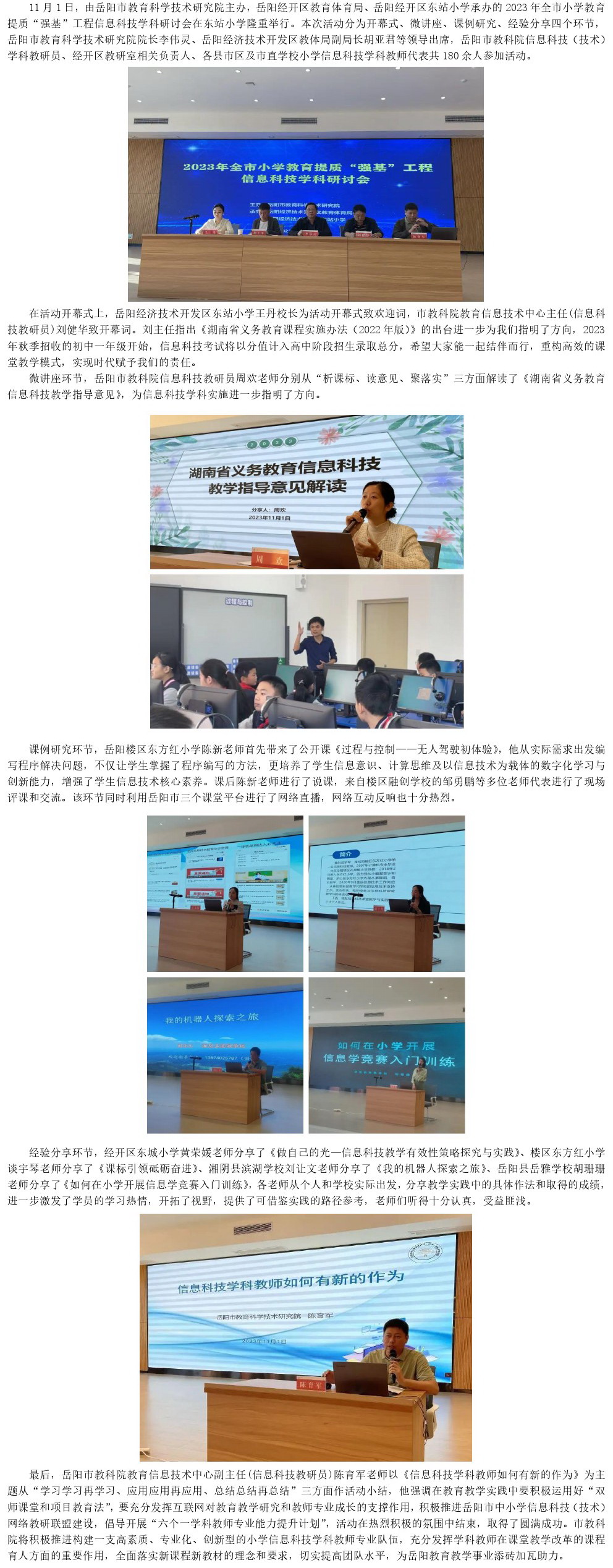 【信息科技】2023年岳阳市小学教育提质“强基”工程信息科技学科研讨会在经开区东站小学圆满举行