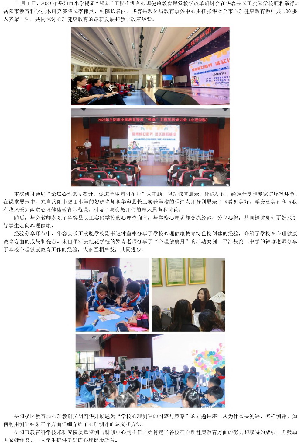 【心理健康】2023年岳阳市小学教育提质“强基”工程推进暨心理健康教育课堂教学改革研讨会在华容县长工实验学校召开