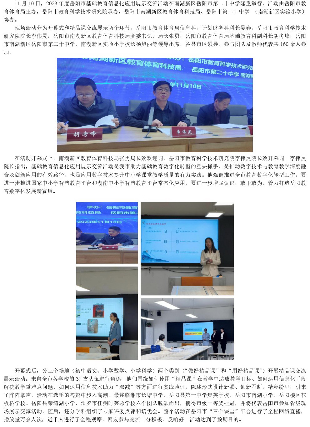 【教育信息化】2023年度岳阳市基础教育信息化应用展示交流活动在南湖新区举行