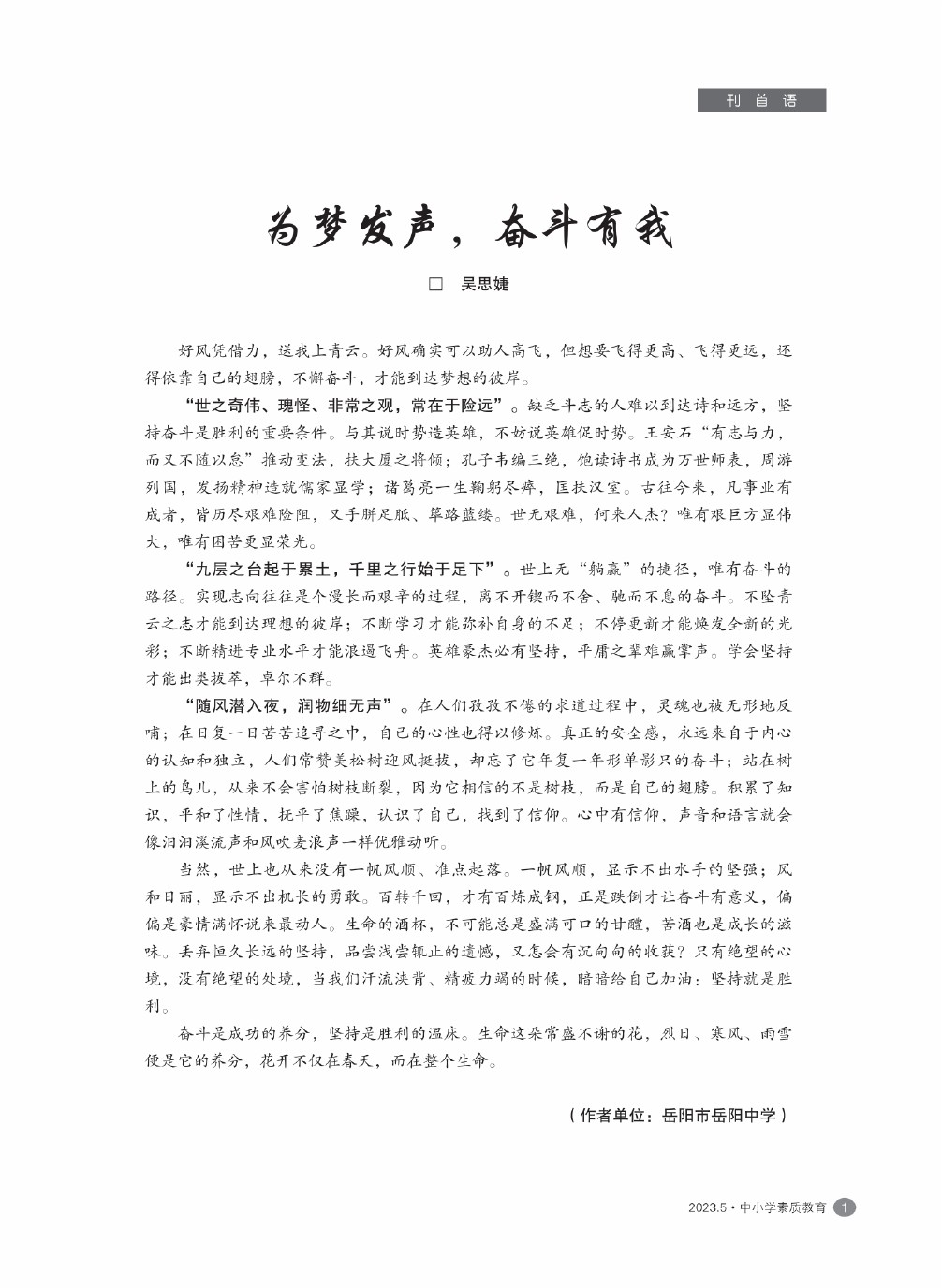 【2023年第5期】为梦发声,奋斗有我