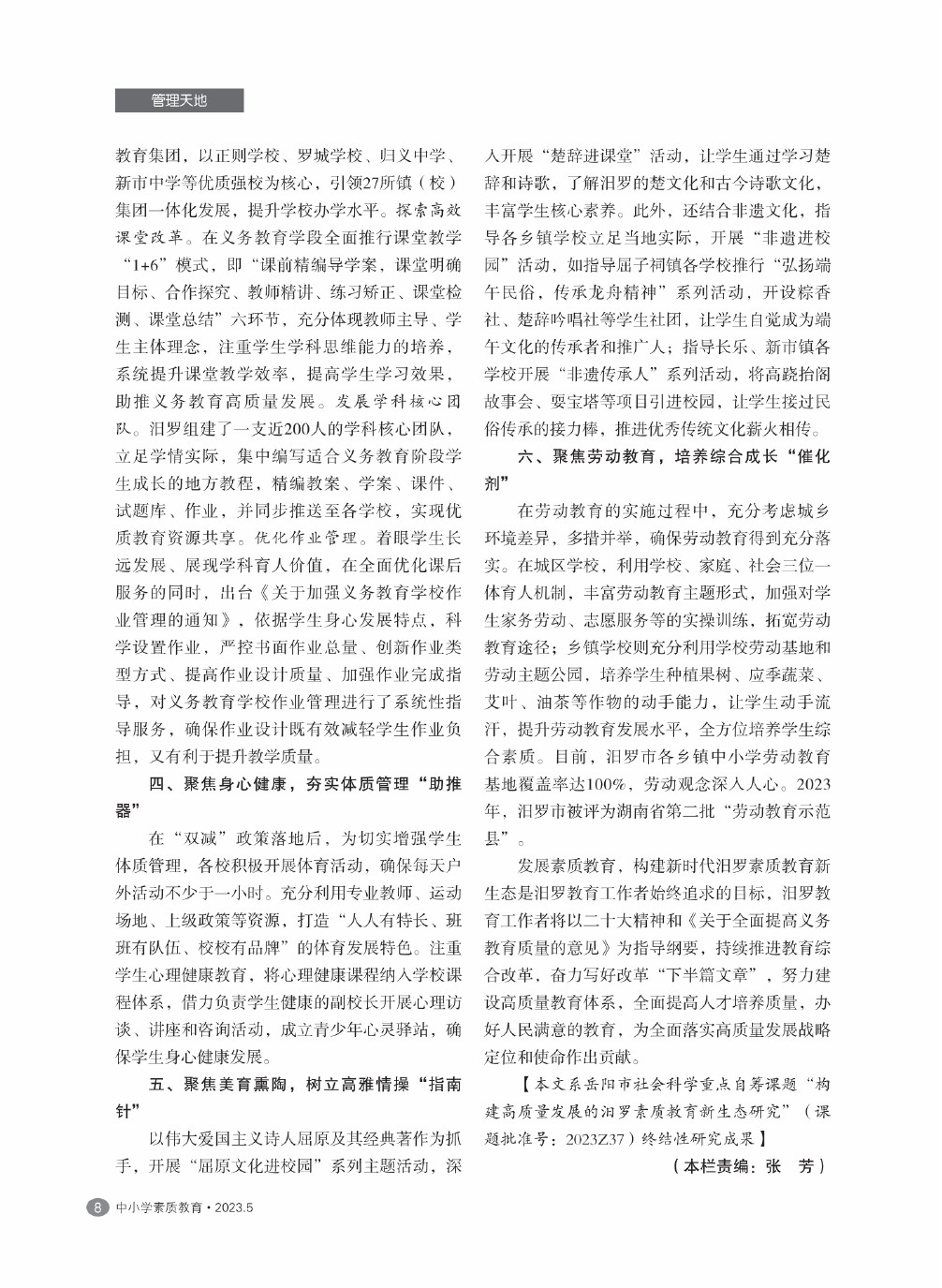 【2023年第5期】统筹规划布局,坚持六个聚焦 有力破除义务教育优质均衡发展难题