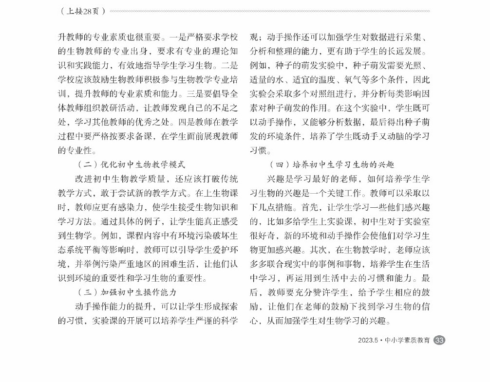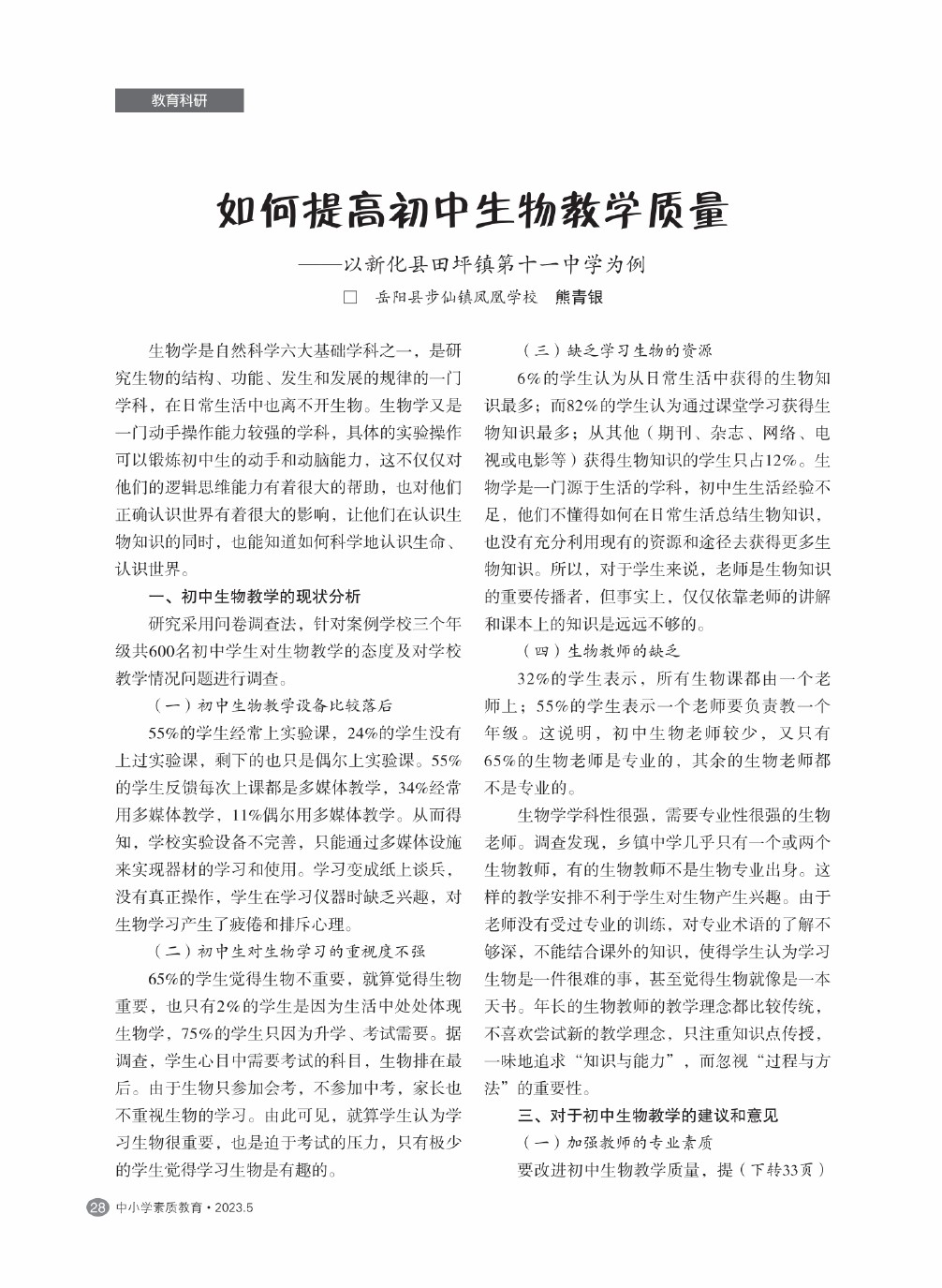 【2023年第5期】如何提高初中生物教学质量——以新化县田坪镇第十一中学为例