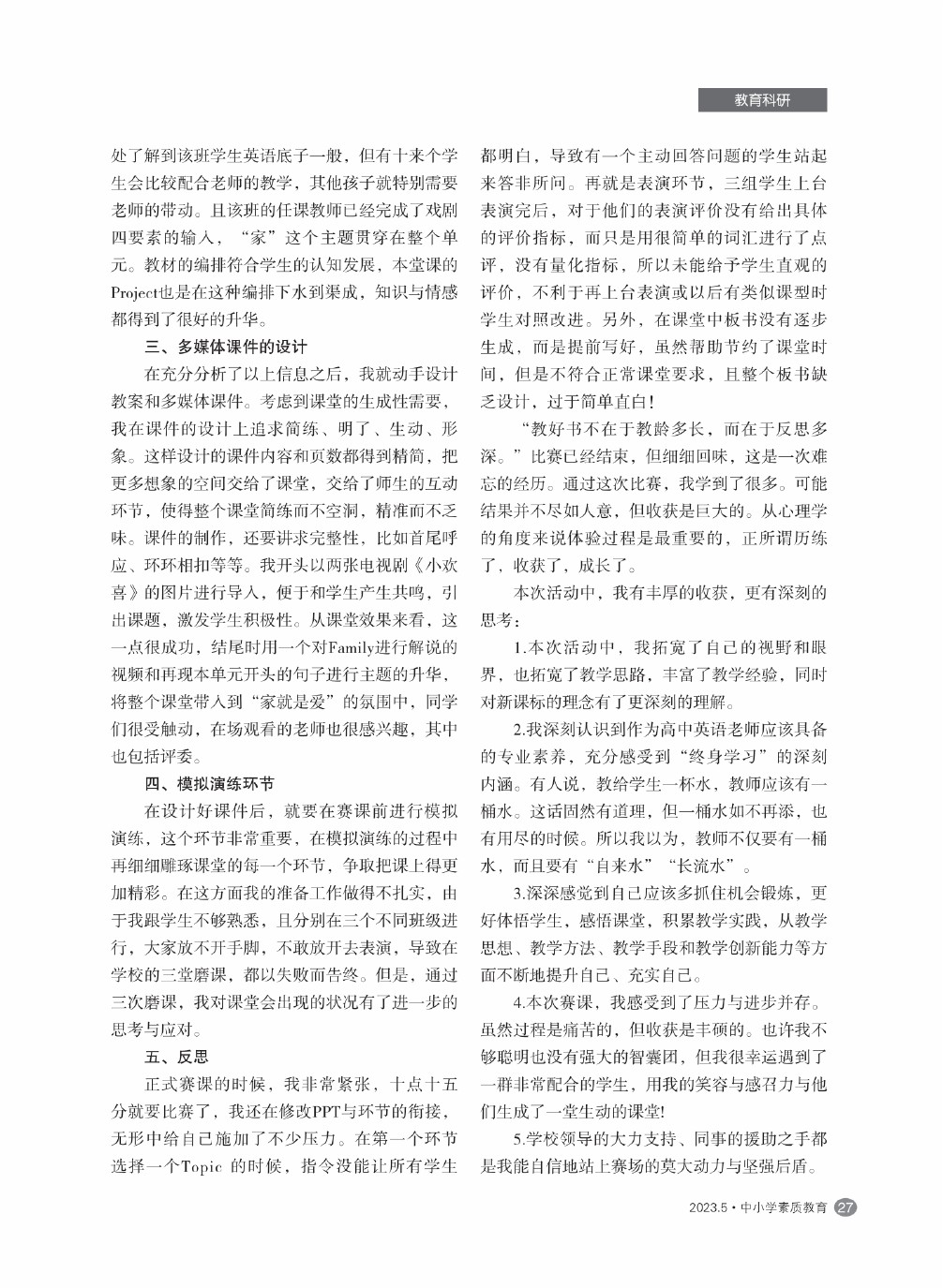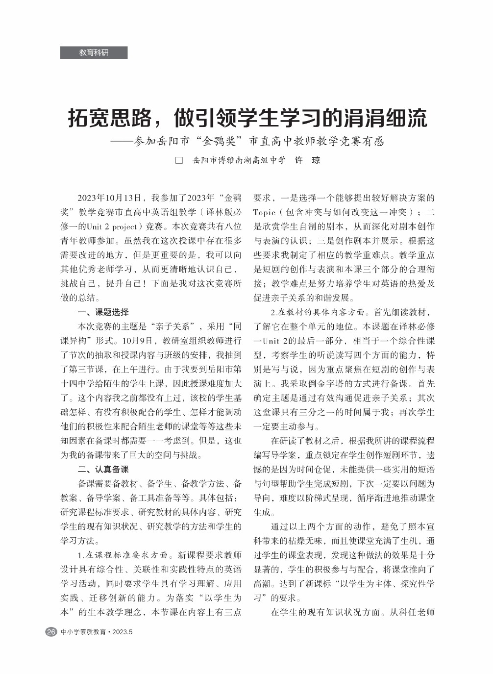 【2023年第5期】拓宽思路,做引领学生学习的涓涓细流——参加岳阳市“金鹗奖”市直高中教师教学竞赛有感