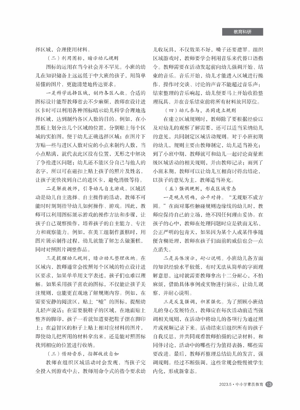 【2023年第5期】小班幼儿区域活动常规的形成路径