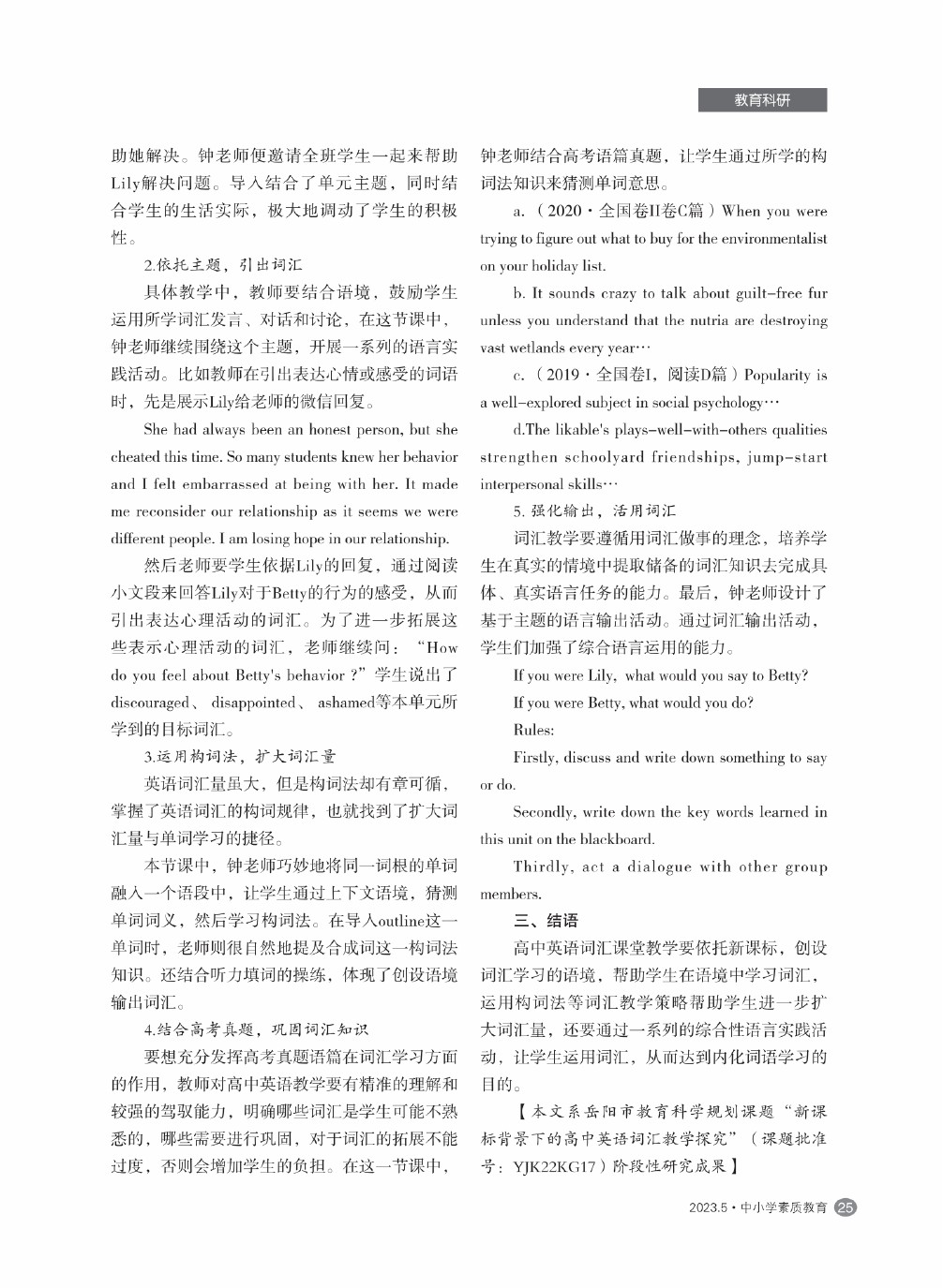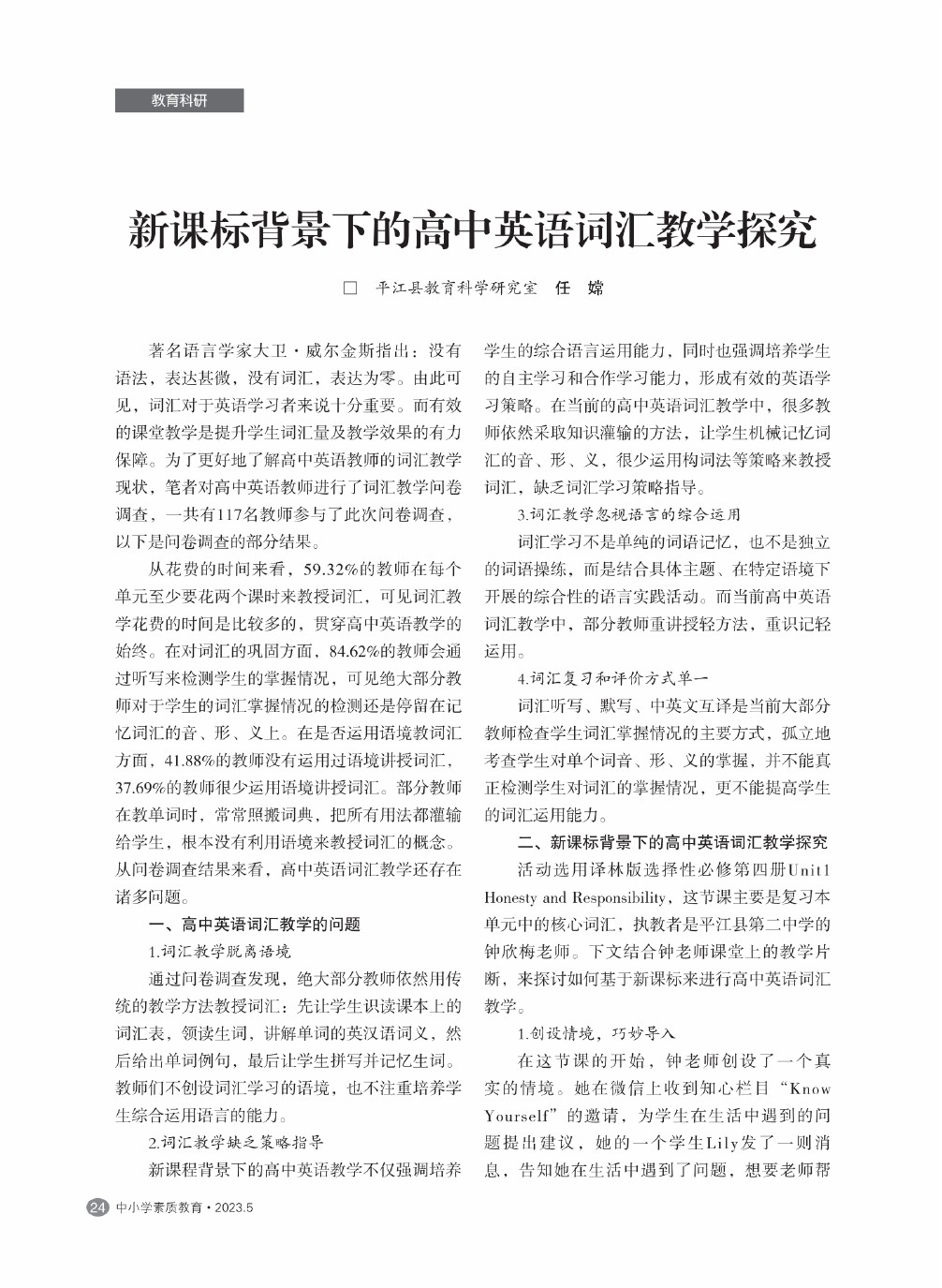 【2023年第5期】新课标背景下的高中英语词汇教学探究