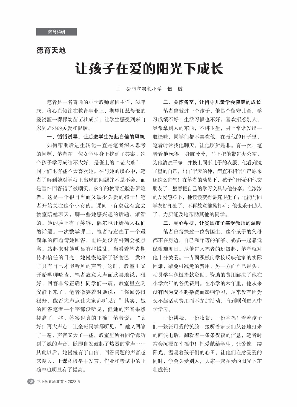 【2023年第5期】让孩子在爱的阳光下成长