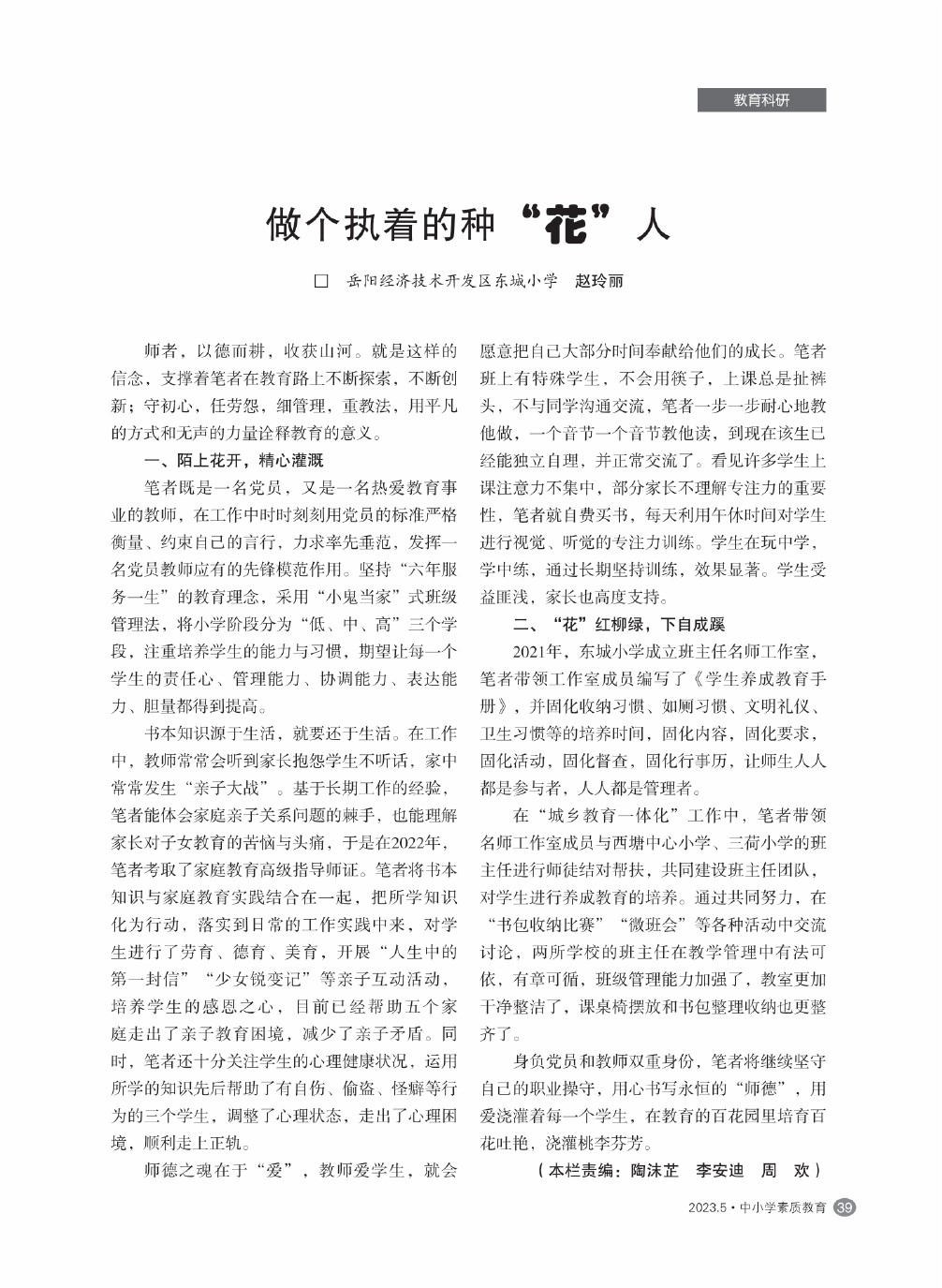 【2023年第5期】做个执着的种“花”人