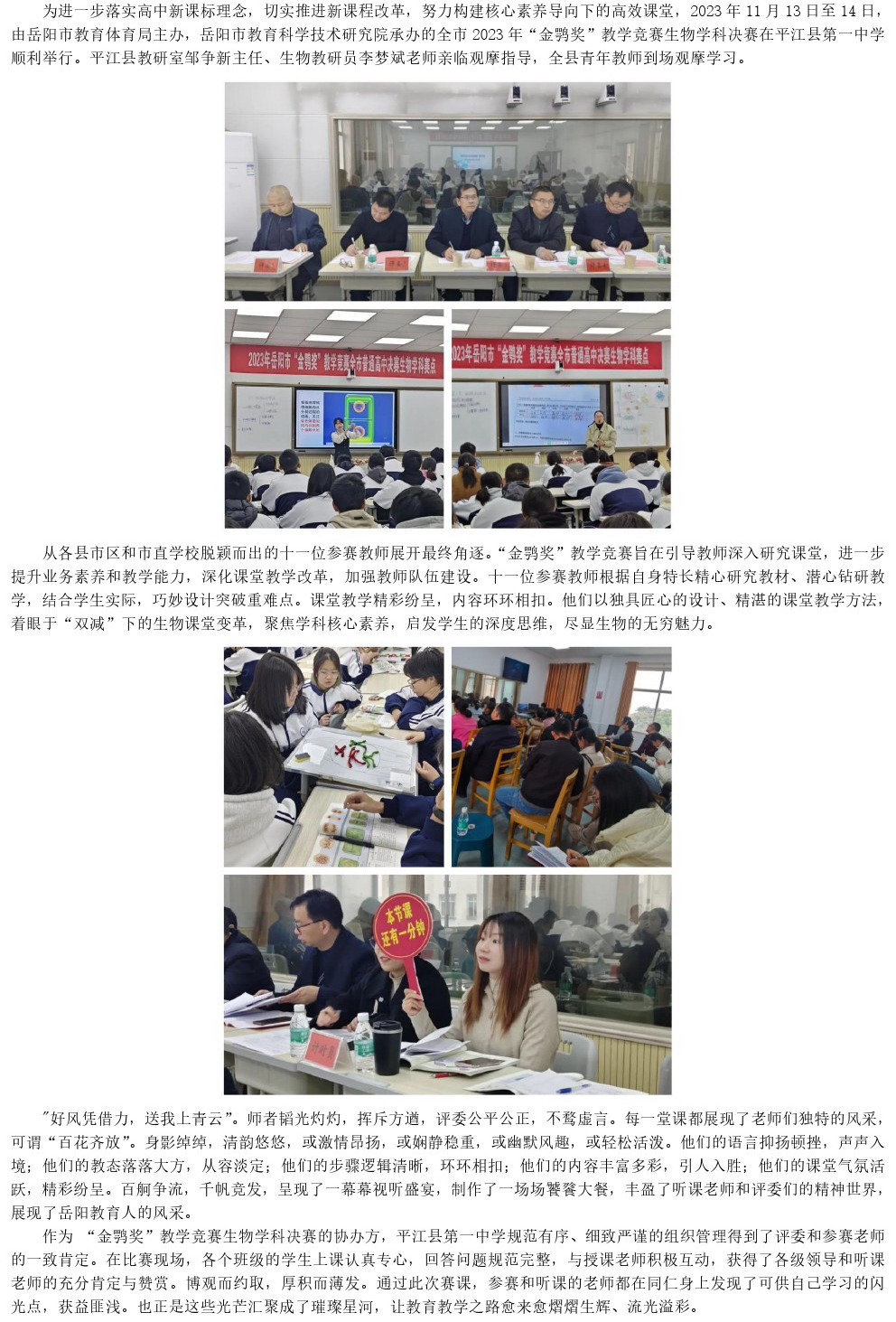 【高中生物】“金鹗”鸣天岳,俊彦展风采——岳阳市2023年“金鹗奖”教学竞赛生物学科决赛在平江县第一中学顺利举行