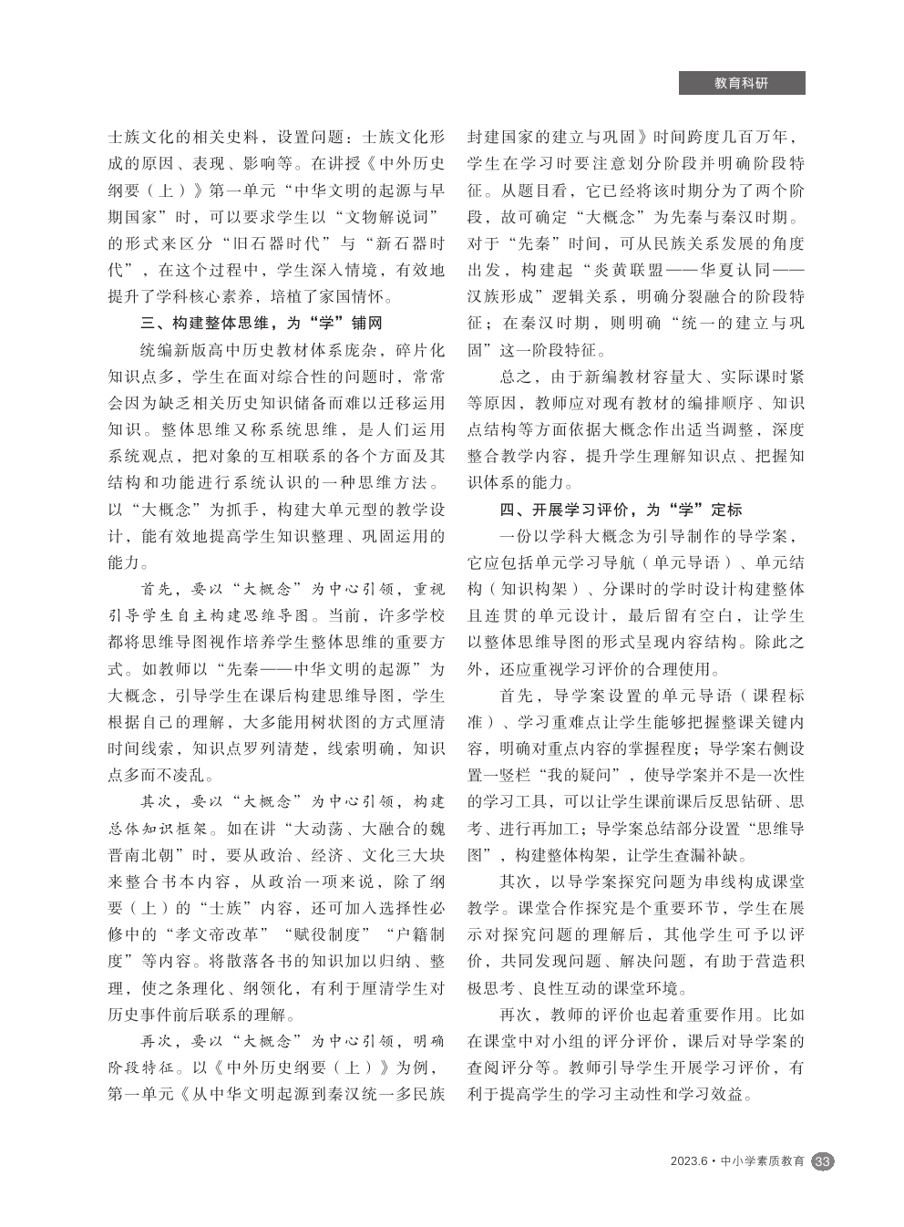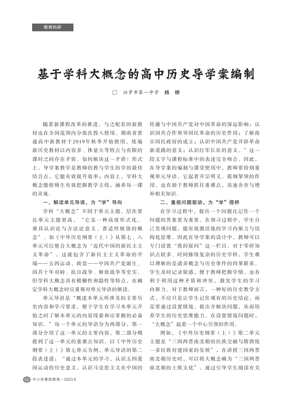 【2023年第6期】基于学科大概念的高中历史导学案编制
