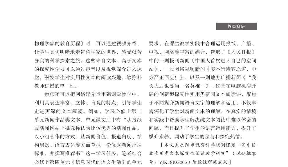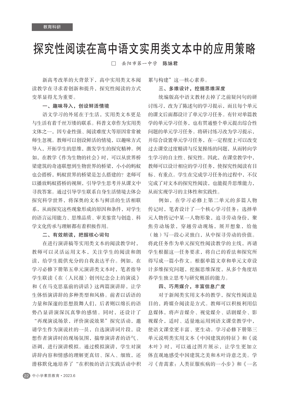 【2023年第6期】探究性阅读在高中语文实用类文本中的应用策略