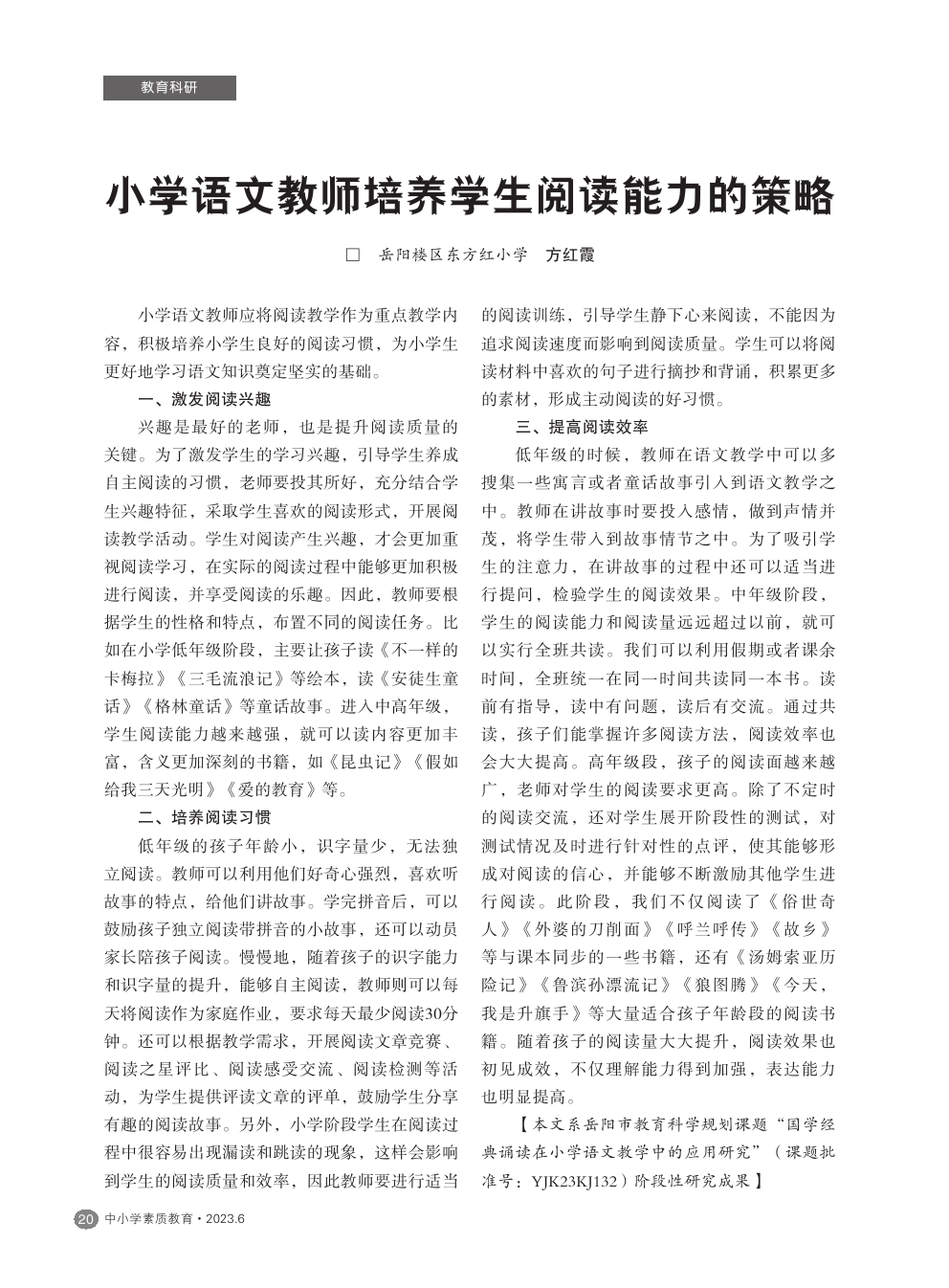 【2023年第6期】小学语文教师培养学生阅读能力的策略