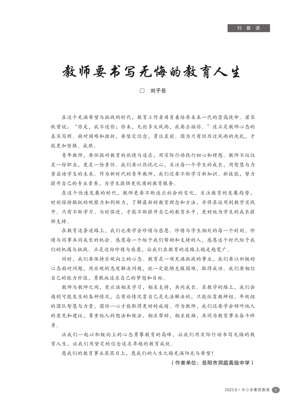 【2023年第6期】教师要书写无悔的教育人生